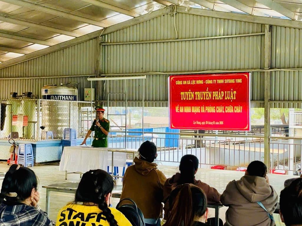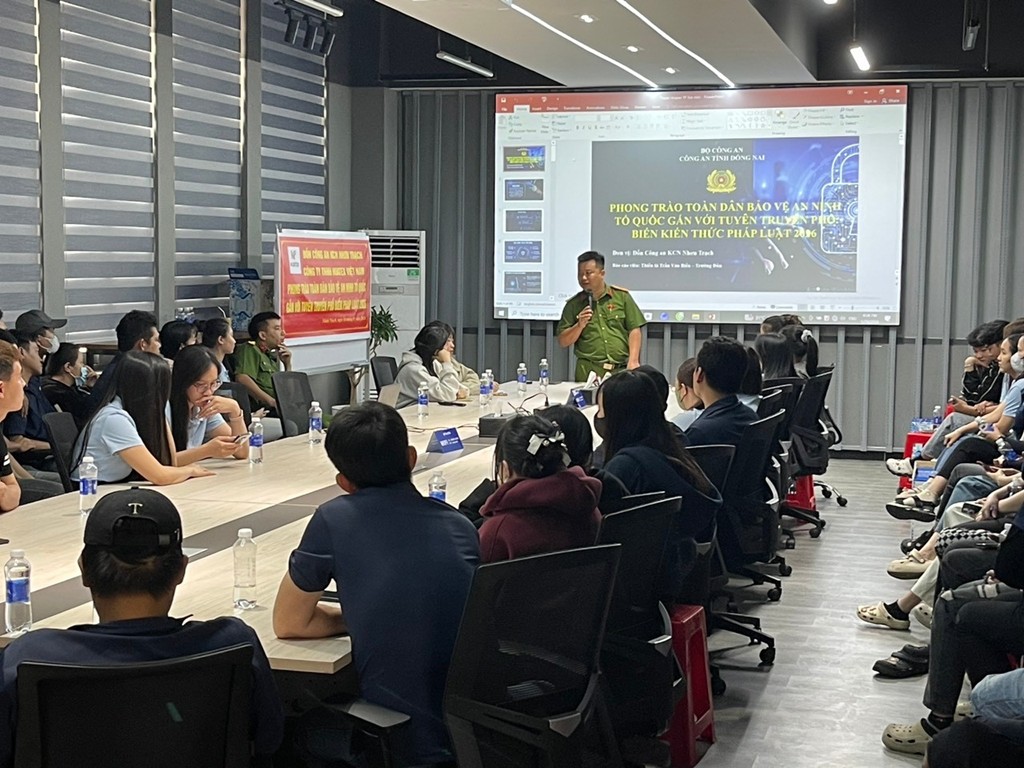 Ngày 30/1, Đồn Công an Khu công nghiệp (KCN) Nhơn Trạch, tỉnh Đồng Nai tổ chức tuyên truyền, phổ biến pháp luật về phòng, chống tội phạm hình sự, tội phạm sử dụng công nghệ cao và Luật Giao thông đường bộ tại Công ty TNHH Huatex Việt Nam, KCN Nhơn Trạch 6, tham dự có120 cán bộ quản lý và người lao động đang làm việc tại công ty.