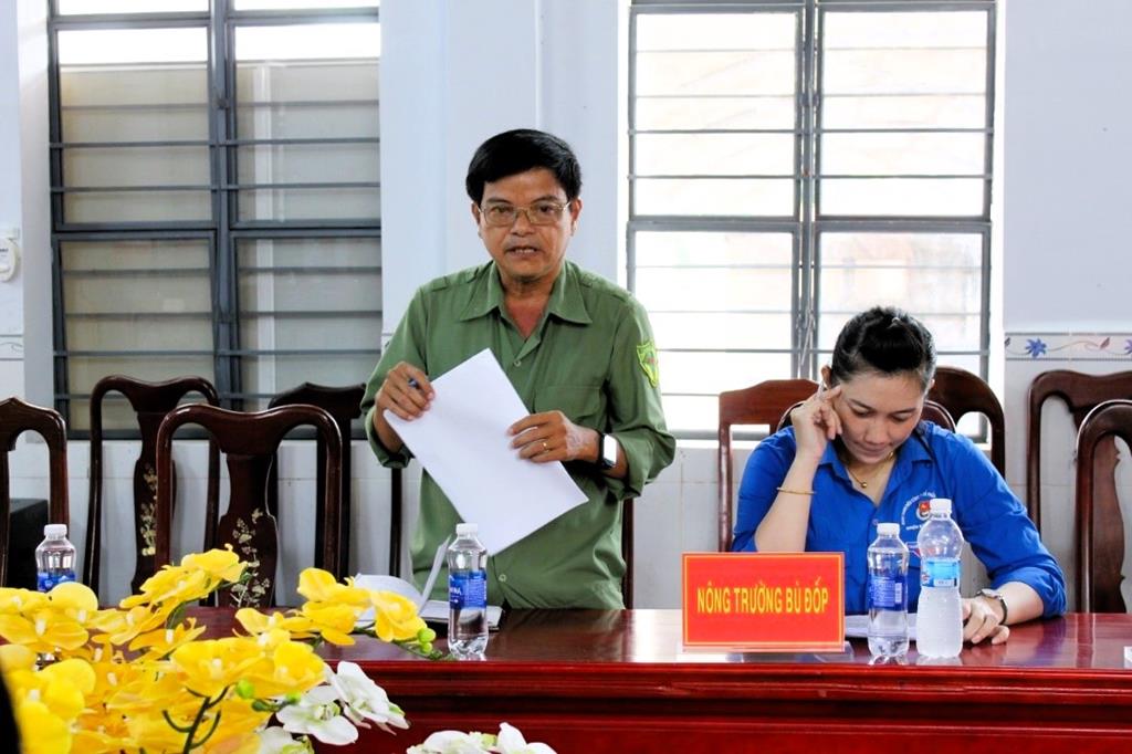 Ông Nguyễn Quang Diên - Giám đốc Nông trường Bù Đốp phát biểu tại cuộc họp