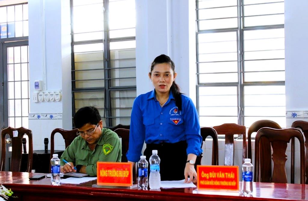 Đại diện các tổ chức đoàn thể nông trường Bù Đốp phát biểu tại cuộc họp