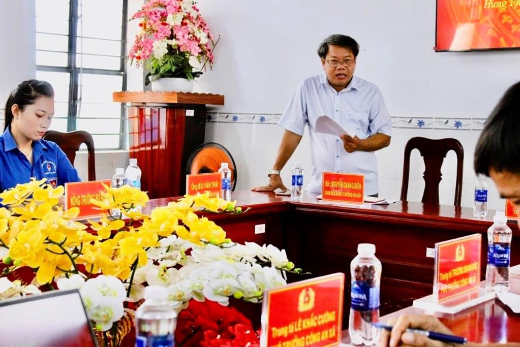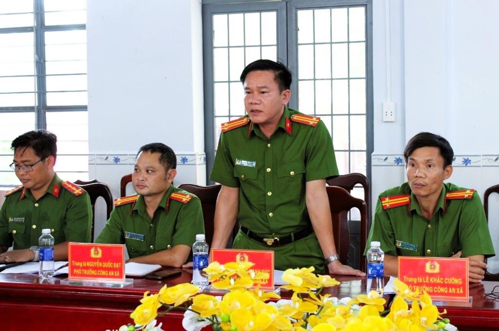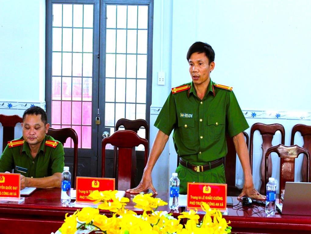 Đồng chí Trung tá Điểu Huỳnh Sơn – Trưởng Công an xã phát biểu tại cuộc họp