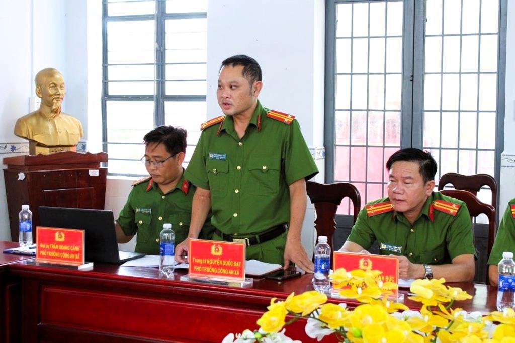 Các đồng chí Ban Lãnh đạo Công an xã phát biểu tại cuộc họp