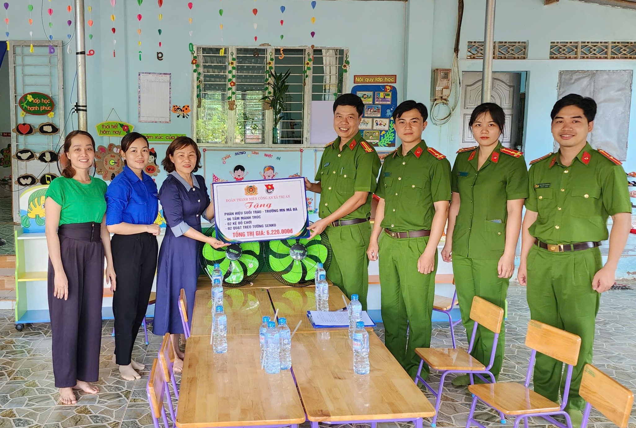 Chi đoàn đã trao tặng 6 mành trúc che nắng, 2 kệ sách, 2 quạt treo tường. Những phần quá trên tuy giá trị về vật chất không lớn, nhưng thể hiện tấm lòng, tình cảm, trách nhiệm của tuổi trẻ Công an xã Trị An với thế hệ tương lai của đất nước, giúp các em tại điểm trường cải thiện điều kiện học tập, sinh hoạt, tránh nắng gắt, đảm bảo sức khỏe, tạo không gian đọc sách, khơi gợi tinh thần ham học và thói quen đọc sách từ sớm.