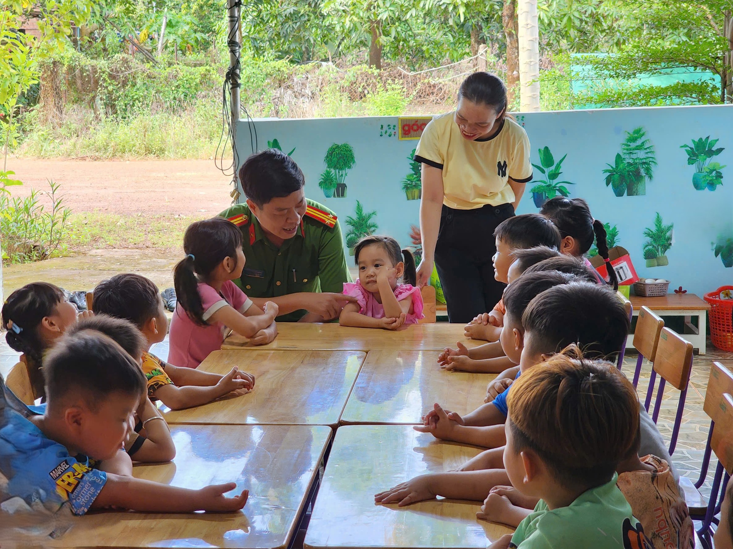 Công an xã Trị An cùng cô, trò Trường Mầm non Mã Đà – Phân hiệu Suối Trau tại buổi tặng quà