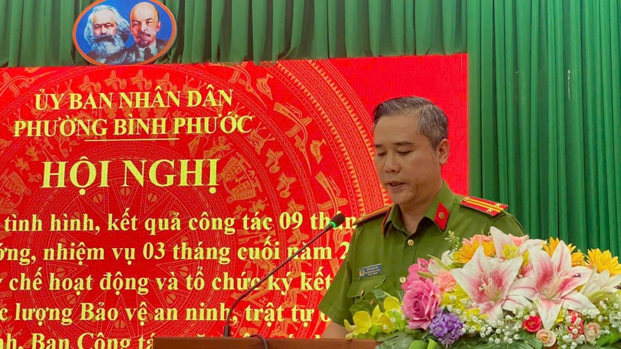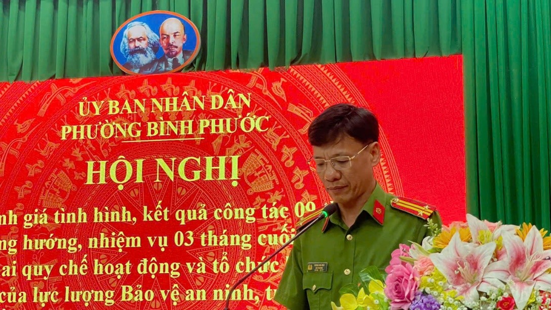 Phát biểu chỉ đạo Hội nghị, đồng chí Ngô Hồng Khang, Phó Bí thư Đảng ủy, Chủ tịch UBND phường ghi nhận và đánh giá cao nỗ lực, tinh thần trách nhiệm của lực lượng Công an phường, các Tổ BVANTT cùng các ban, ngành, đoàn thể trong thời gian qua. Đồng chí nhấn mạnh, thời gian tới Lực lượng BVANTT ở cơ sở cần tiếp tục phát huy vai trò, chủ động nắm tình hình, kịp thời tham mưu, phối hợp giải quyết các vấn đề phát sinh ngay từ cơ sở; đồng thời tăng cường tuyên truyền, vận động Nhân dân tham gia phong trào Toàn dân bảo vệ an ninh Tổ quốc, góp phần xây dựng phường Bình Phước ngày càng bình yên, văn minh và phát triển bền vững.