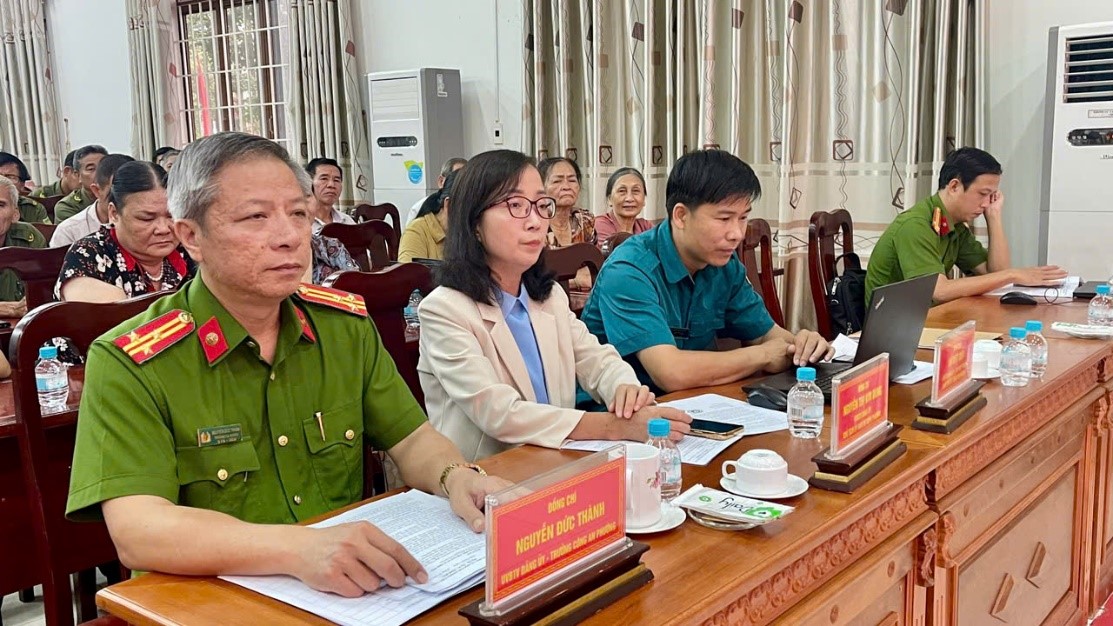 Thượng tá Nguyễn Đức Thành, Trưởng Công an phường; đồng chí Nguyễn Thị Kim Dung, Chủ tịch UBMTTQ Việt Nam phường cùng đại diện các ban, ngành tại Hội nghị.