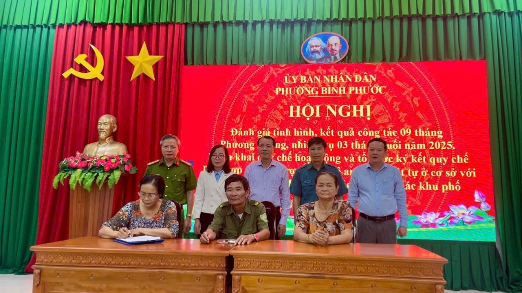 Tại Hội nghị, 37 Tổ trưởng Lực lượng BVANTT ở cơ sở đã ký kết Quy chế phối hợp giữa Tổ BVANTT ở cơ sở với Ban Điều hành và Ban Mặt trận các khu phố nhằm nâng cao hiệu quả phối hợp, phát huy sức mạnh toàn dân trong công tác bảo đảm ANTT.