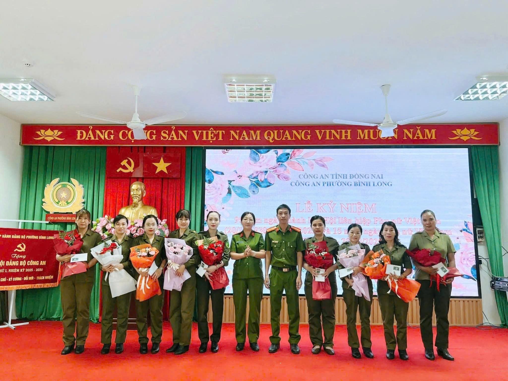 Đến dự và chúc mừng buổi lễ có Thượng tá Nguyễn Hoài Thanh, Bí thư Đảng ủy, Trưởng Công an phường; các đồng chí trong Ban Lãnh đạo cùng toàn thể CBCS Công an phường. Thay mặt Đảng ủy, Ban Lãnh đạo Công an phường, đồng chí Nguyễn Hoài Thanh đã ghi nhận và biểu dương tinh thần trách nhiệm, sự đóng góp bền bỉ, thầm lặng nhưng vô cùng to lớn của các nữ cán bộ, chiến sĩ Công an phường Bình Long trong thực hiện nhiệm vụ chính trị và công tác chuyên môn.