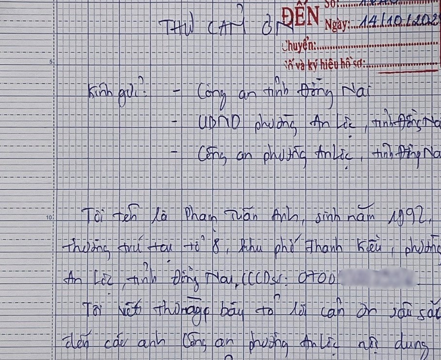 Người dân gửi thư cảm ơn Công an phường Bình Long