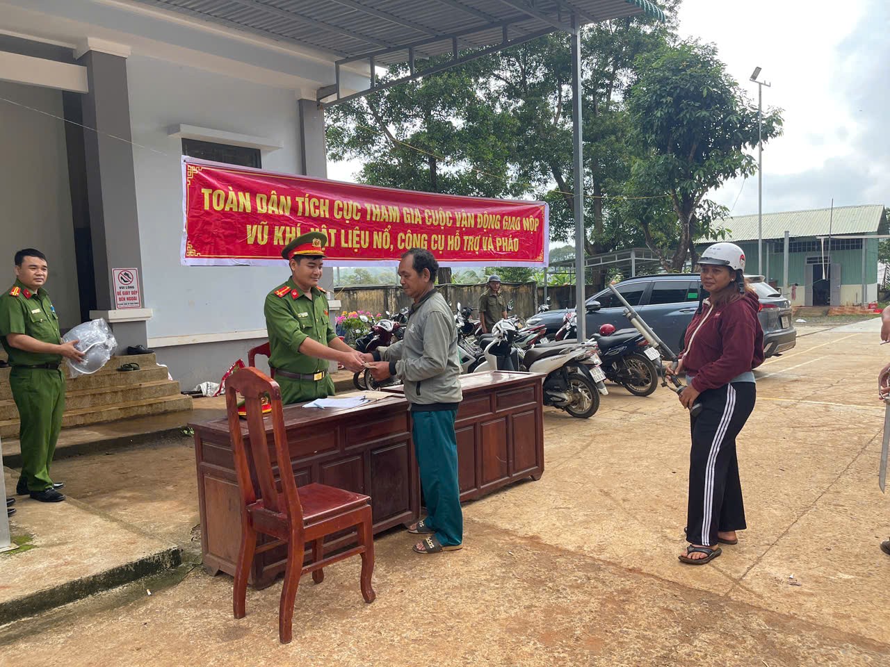 Ngay sau buổi lễ, nhờ làm tốt công tác tuyên truyền, vận động, người dân trên địa bàn xã đã tự nguyện giao nộp 03 vật phẩm, gồm: 01 khẩu súng cồn tự chế, 02 cây đao tự chế.