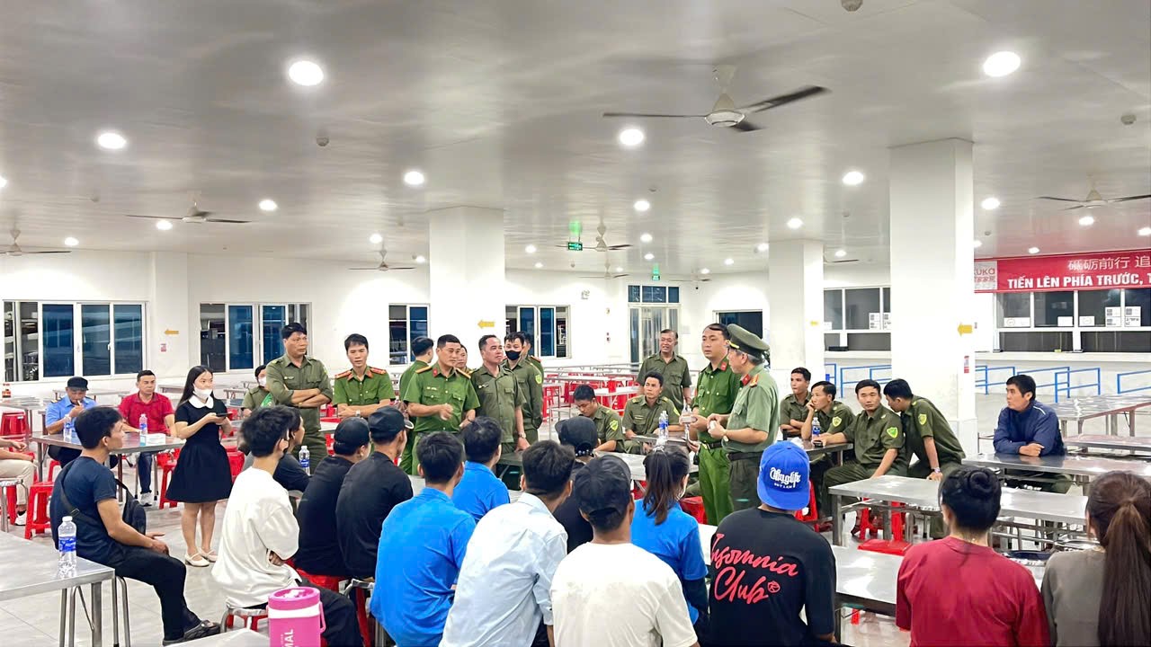 Công an phường kiểm tra ma túy công nhân đang làm việc trong doanh nghiệp.