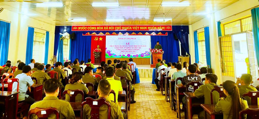 Công an xã Nha Bích kêu gọi toàn thể cán bộ, đảng viên, công chức, viên chức, đoàn viên, hội viên và các tầng lớp nhân dân trên địa bàn tích cực hưởng ứng phong trào, tự nguyện giao nộp các loại vũ khí, vật liệu nổ, công cụ hỗ trợ và pháo còn tồn đọng, góp phần giữ vững an ninh trật tự, xây dựng xã Nha Bích an toàn, văn minh, không tiếng pháo nổ, không vi phạm pháp luật về vũ khí, vật liệu nổ và công cụ hỗ trợ.