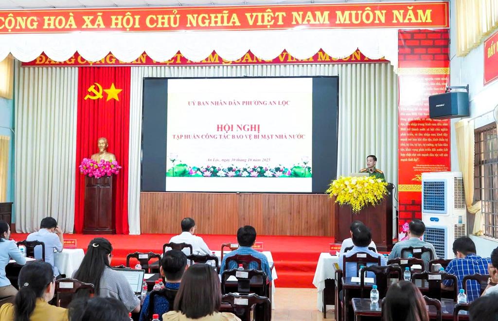 Hội nghị tập huấn không chỉ giúp đội ngũ cán bộ, công chức phường nâng cao nhận thức, củng cố kiến thức pháp luật và kỹ năng bảo mật thông tin, mà còn góp phần quan trọng trong việc xây dựng nền hành chính vững mạnh, hiện đại và an toàn. Công tác bảo vệ bí mật nhà nước là nhiệm vụ chính trị then chốt, gắn liền với mục tiêu phát triển bền vững của phường An Lộc, bảo đảm môi trường làm việc ổn định, kỷ cương, an toàn thông tin, phục vụ hiệu quả cho sự nghiệp phát triển kinh tế - xã hội và giữ vững an ninh trật tự ở địa phương.