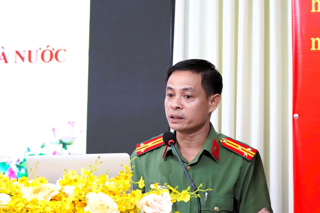 Thượng tá Nguyễn Văn Huy - Phó Trưởng phòng An ninh chính trị Nội bộ thông tin các nội dung về bảo vệ BMNN tại Hội Nghị