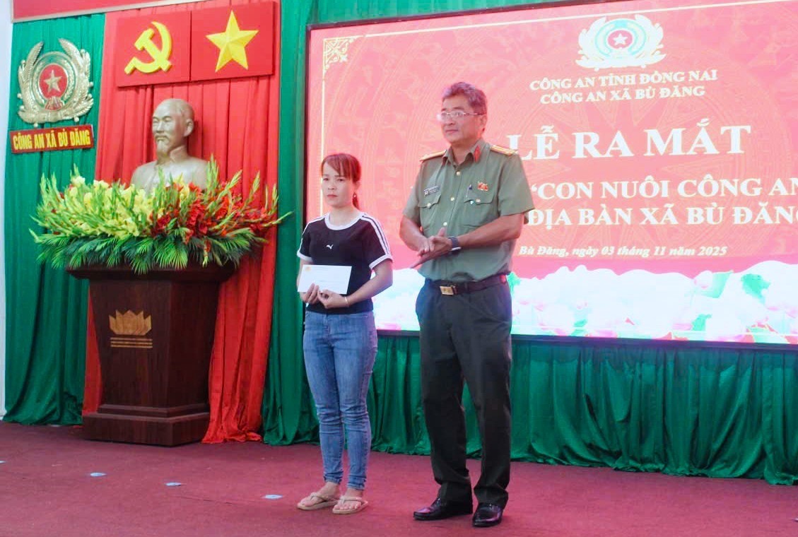 Theo đó, Công an xã Bù Đăng nhận đỡ đầu, nuôi dưỡng em Nguyễn Hữu Trí, sinh năm 2013, học sinh lớp 7A4, Trường THCS Phan Bội Châu - một học sinh có hoàn cảnh đặc biệt khó khăn. Em Trí hiện sinh sống cùng mẹ, em trai và ông bà ngoại đã già yếu. Dù hoàn cảnh thiếu thốn, thiệt thòi so với nhiều bạn bè cùng trang lứa, song Trí vẫn luôn cố gắng phụ giúp gia đình, chăm ngoan, nỗ lực học tập và nhiều năm liền đạt danh hiệu học sinh khá, giỏi.