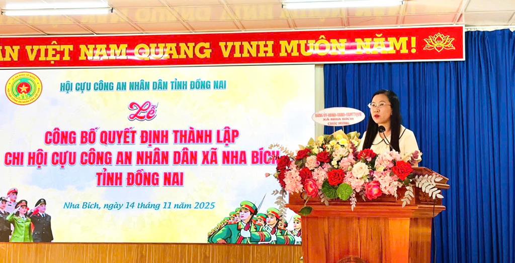 Phát biểu chỉ đạo, đồng chí Nguyễn Thị Minh Tiền - Phó Chủ tịch UBND xã và đồng chí Đại tá Lê Đức Long - Phó Chủ tịch Thường trực Hội Cựu CAND tỉnh Đồng Nai đều ghi nhận, đánh giá cao những đóng góp của lực lượng Cựu CAND. Các đồng chí đề nghị Chi hội Cựu CAND xã Nha Bích tiếp tục phát huy bản lĩnh, kinh nghiệm và uy tín của người chiến sĩ Công an, phối hợp chặt chẽ với Công an xã trong công tác tuyên truyền, phổ biến pháp luật, nắm tình hình địa bàn, phòng chống tội phạm, tham gia hòa giải cơ sở và tích cực xây dựng phong trào Toàn dân bảo vệ an ninh Tổ quốc.