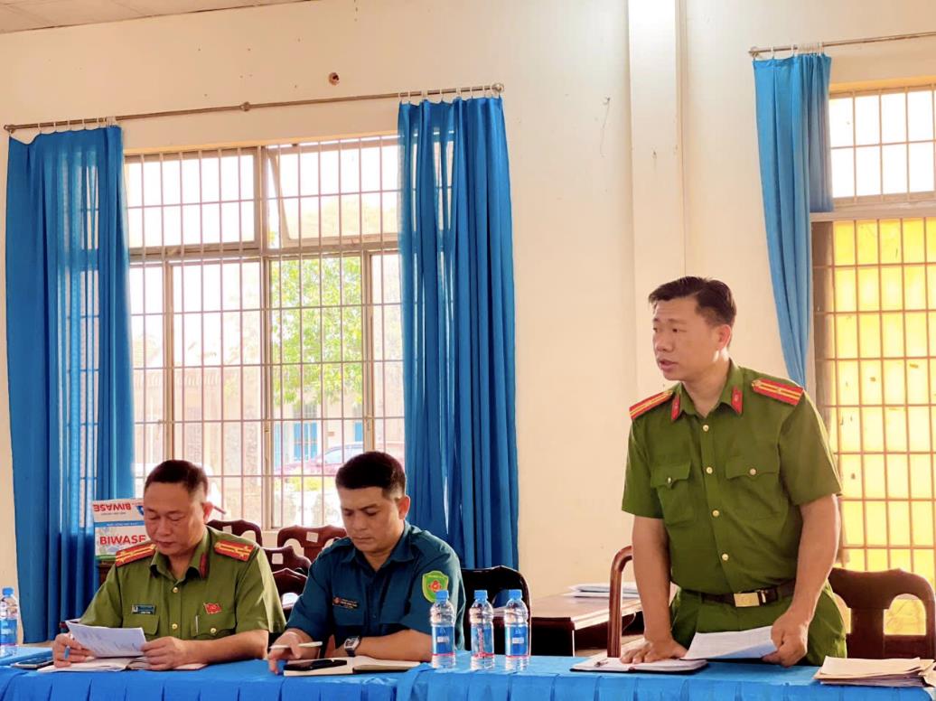 Đại diện Công an xã Nha Bích báo cáo kết quả tuyển chọn công dân tham gia nghĩa vụ CAND