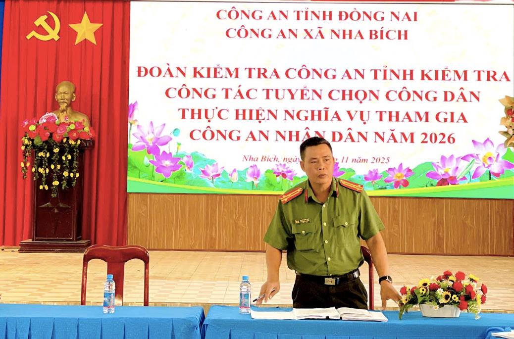 Phát biểu kết luận tại buổi kiểm tra, đồng chí Thượng tá Nguyễn Đình Thủy, Phó Trưởng phòng Tổ chức cán bộ Công an tỉnh Đồng Nai đánh giá cao kết quả tuyển chọn công dân nhập ngũ của Công an xã Nha Bích.
