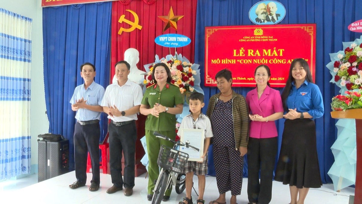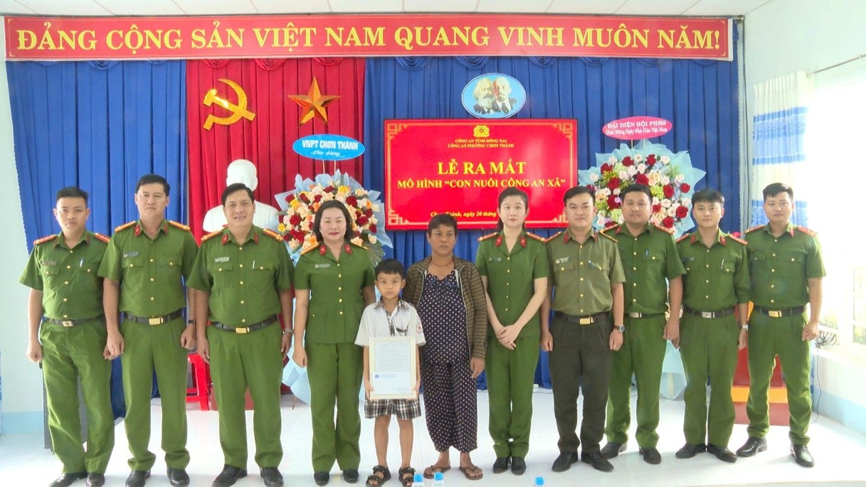 Trên cơ sở kết quả phối hợp, khảo sát với Trường Tiểu học -Trung học cơ sở (TH-THCS) Lê Văn Tám và các đơn vị liên quan, Công an phường Chơn Thành đã lựa chọn em Bùi Thanh Tài (sinh năm 2015), học sinh lớp 3B, Trường TH-THCS Lê Văn Tám là trường hợp đầu tiên được đỡ đầu theo mô hình “Con nuôi Công an xã”. Em Tài có hoàn cảnh đặc biệt khó khăn, mồ côi cả cha lẫn mẹ, hiện sống cùng gia đình dì ruột thuộc diện hộ khó khăn của địa phương. Theo mô hình, Công an phường sẽ hỗ trợ em mức kinh phí 1 triệu đồng/tháng, trích từ đóng góp của cán bộ, chiến sĩ và sự chung tay của các nhà hảo tâm, doanh nghiệp.