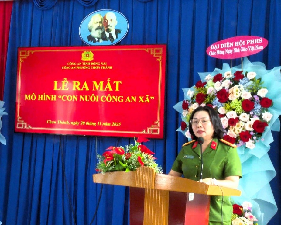 Phát biểu tại buổi lễ, Trung tá Nguyễn Thị Đào, Phó Trưởng Công an phường Chơn Thành, nhấn mạnh: “mô hình “Con nuôi Công an xã” mang ý nghĩa nhân văn sâu sắc, thể hiện tinh thần trách nhiệm và sự sẻ chia của lực lượng Công an nhân dân trong chăm sóc, bảo vệ và hỗ trợ trẻ em có hoàn cảnh khó khăn. Các hoạt động thăm hỏi, hỗ trợ và sinh hoạt sẽ được duy trì thường xuyên, phối hợp chặt chẽ với nhà trường và các tổ chức đoàn thể, đảm bảo thiết thực và hiệu quả.”