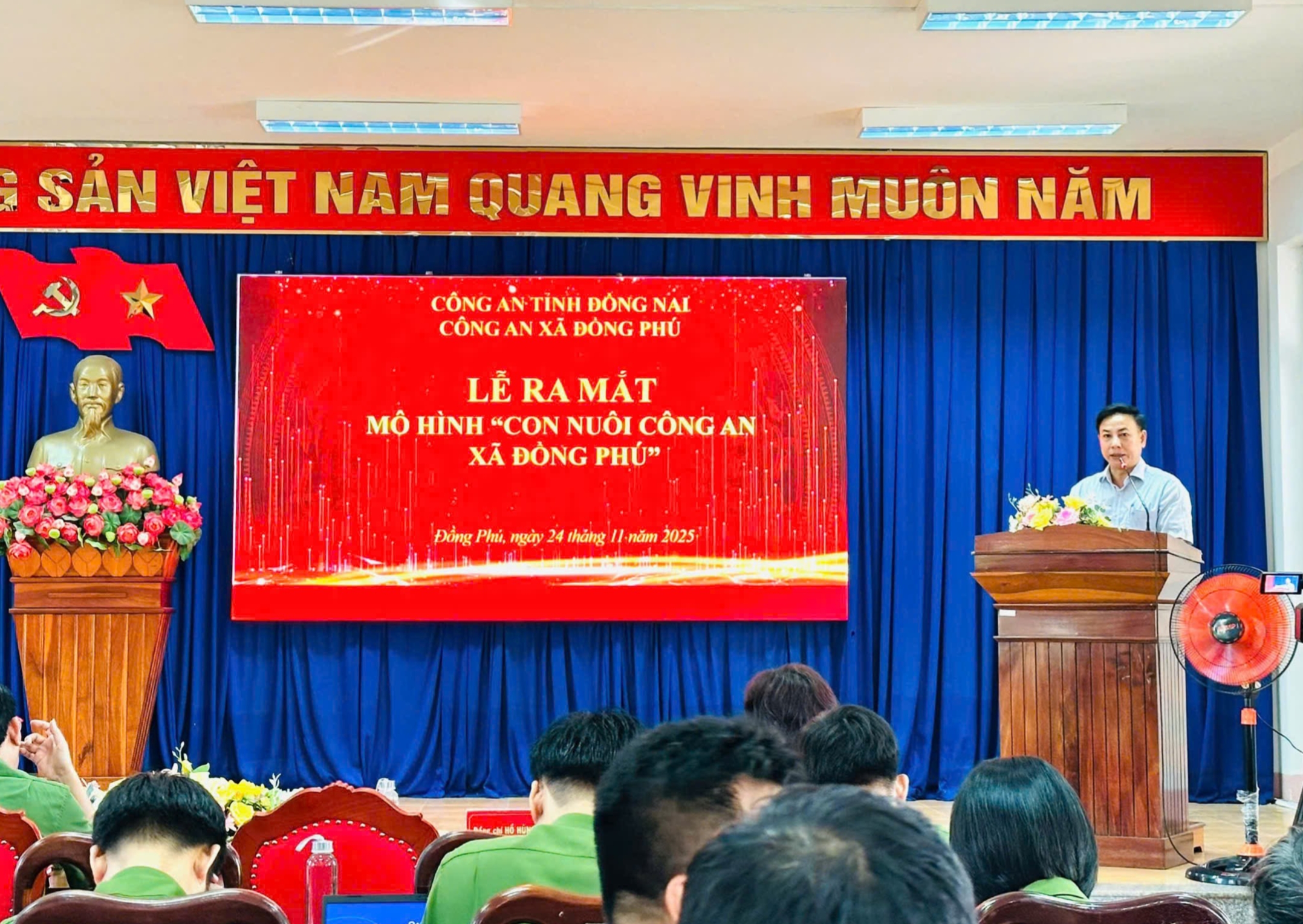 Phát biểu tại buổi Lễ, Đồng chí Hồ Hùng Phi - Phó Bí thư Đảng ủy, Chủ tịch UBND xã Đồng Phú biểu dương tinh thần đầy trách nhiệm, tấm lòng nhân ái của lực lượng Công an xã trong việc triển khai mô hình đầy ý nghĩa nhân văn. Đồng chí kêu gọi các ban, ngành, đoàn thể, nhà trường, các tổ chức xã hội và Nhân dân toàn xã cùng chung tay hỗ trợ, nhân rộng mô hình “Con nuôi Công an xã”, để chương trình thực sự lan tỏa, đi vào chiều sâu và mang lại hiệu quả thiết thực, bền vững trong cộng đồng.