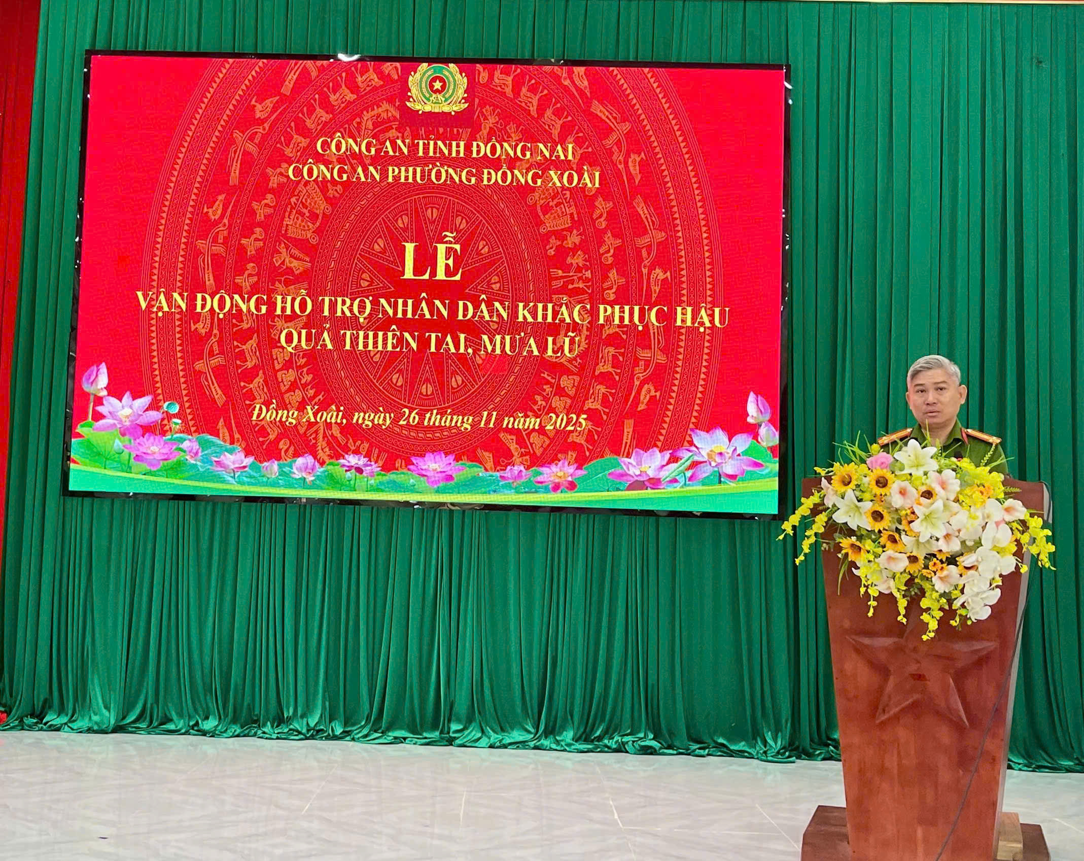 Phát biểu tại buổi lễ, Thượng tá Lê Thanh Minh nhấn mạnh với tinh thần “tương thân, tương ái”, “lá lành đùm lá rách”, góp phần chia sẻ những mất mát, đau thương mà đồng bào đang phải gánh chịu, kêu gọi toàn thể cán bộ, chiến sĩ phát huy truyền thống đoàn kết, trách nhiệm với cộng đồng, tích cực tham gia ủng hộ nhằm chung tay hỗ trợ Nhân dân khắc phục thiệt hại, vượt qua khó khăn, ổn định cuộc sống.