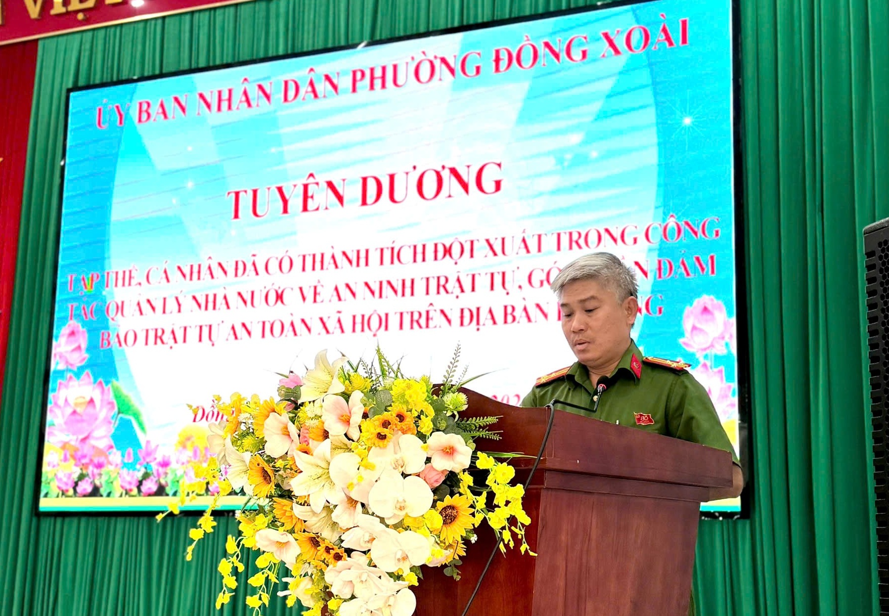 Bí thư Đảng ủy, Chủ tịch HĐND phường Vũ Văn Mười tặng giấy khen cho tập thể Công an phường Đồng Xoài