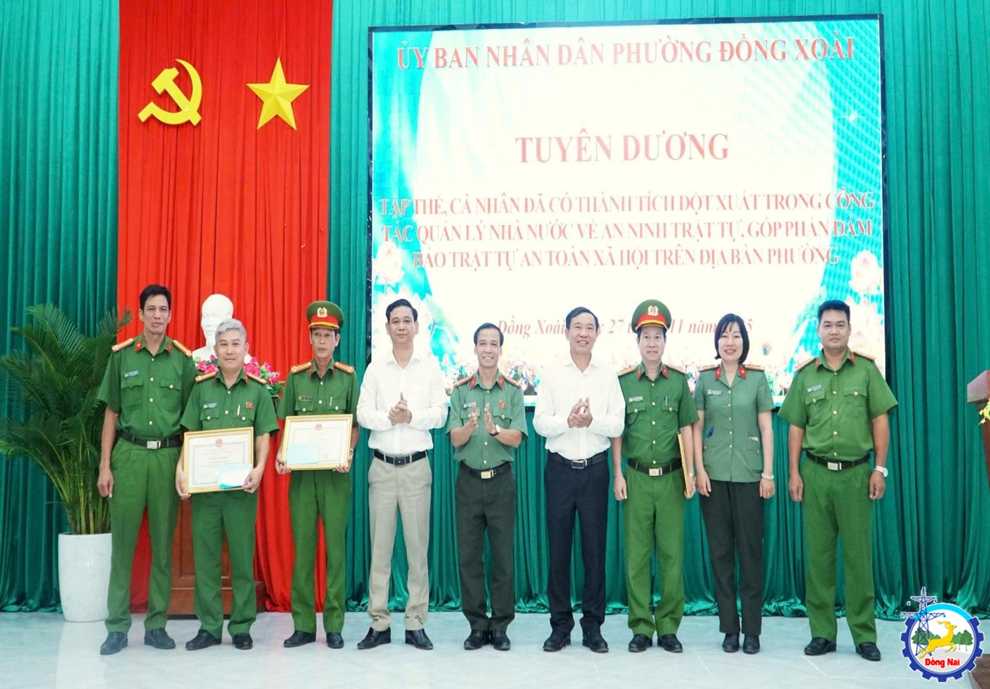 Lãnh đạo địa phương cùng với Ban Chỉ huy Công an phường và cá nhân được khen thưởng