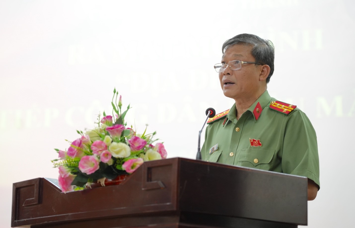 Đại tá Dương Văn Mạnh, Phó Giám đốc Công an tỉnh phát biểu chỉ đạo tại Lễ ra mắt