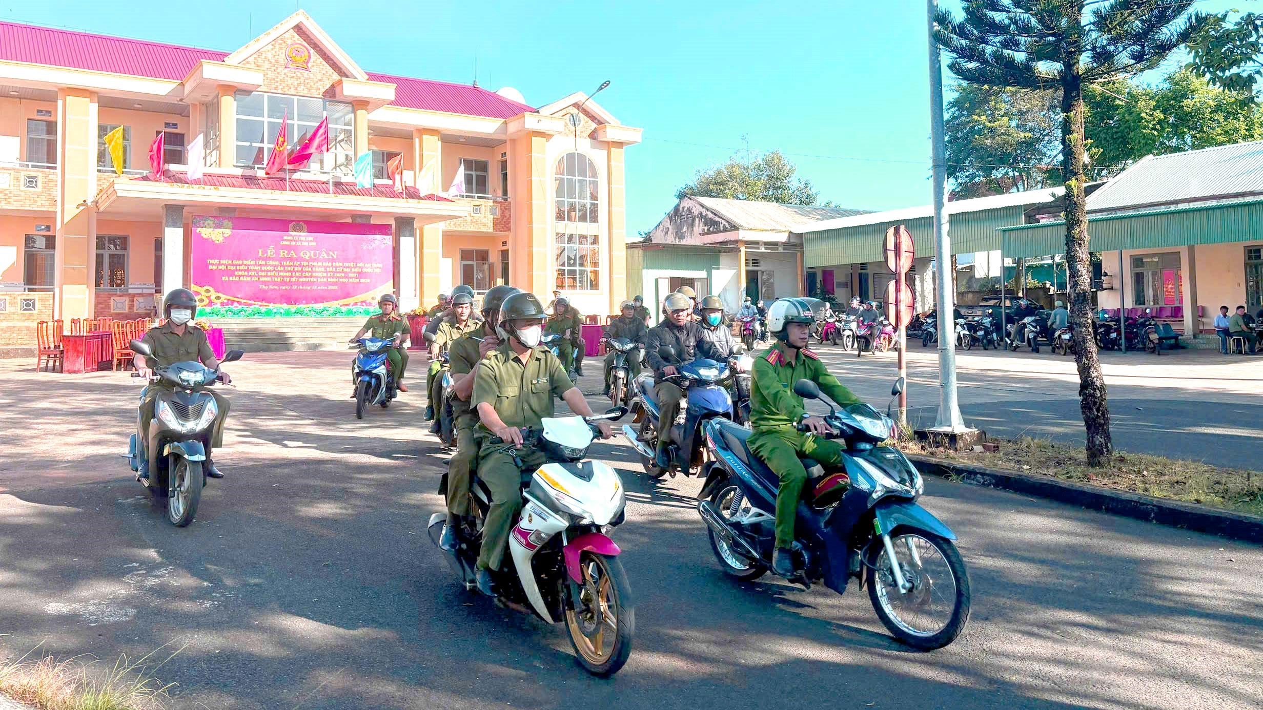 Kết thúc buổi Lễ, Công an xã và các lực lượng tham dự đã tổ chức diễu hành, biểu dương lực lượng trên tuyến QL14 đi qua địa bàn xã.