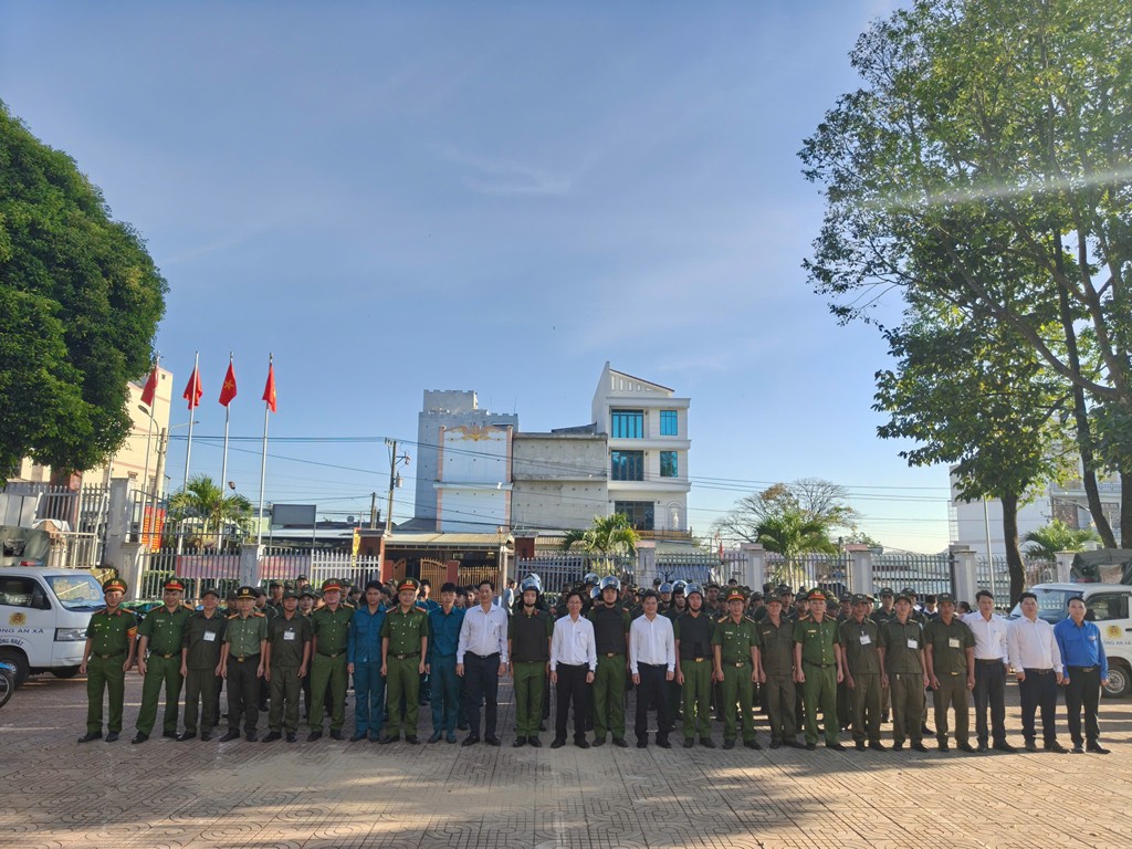Đội hình và phương tiện ra quân của Công an xã Phước Sơn