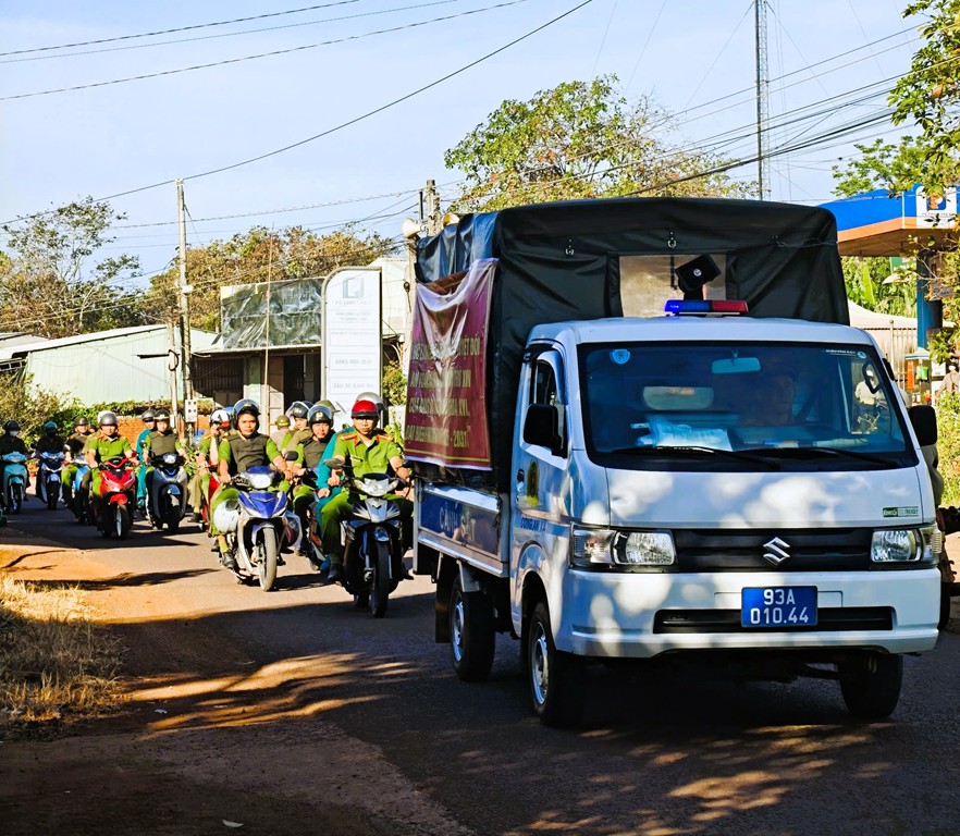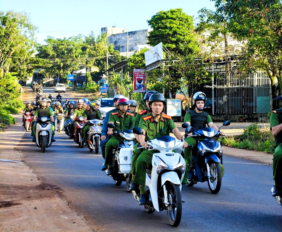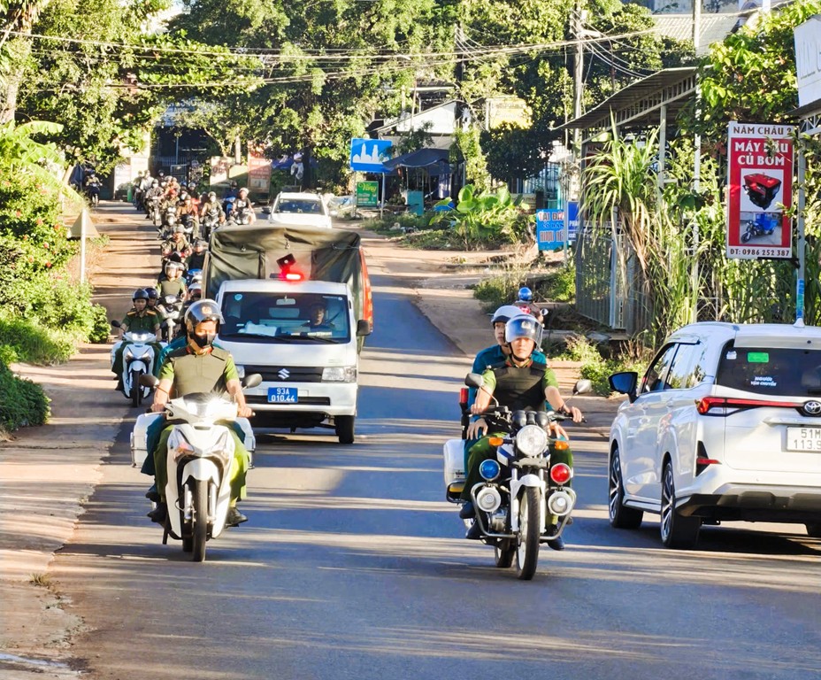 Ngay sau phần nghi lễ, các lực lượng đã tổ chức diễu hành biểu dương lực lượng, tuyên truyền lưu động trên các tuyến đường trọng điểm theo lộ trình đã xác định. Đoàn diễu hành bảo đảm đội hình trang nghiêm, trật tự, an toàn, thể hiện rõ vai trò nòng cốt, xung kích của lực lượng Công an trong đấu tranh phòng, chống tội phạm, giữ gìn bình yên địa bàn.