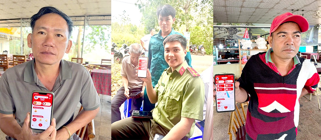 Lực lượng Công an xã Minh Đức tích cực tuyên truyền, hướng dẫn người dân đăng ký, kích hoạt và sử dụng ứng dụng VNeTraffic