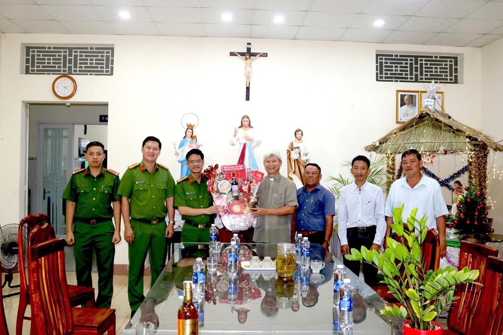 Công an phường thăm hỏi, chức mừng giáng sinh Linh mục Giêrônimô Nguyễn Linh Thao - Chánh xứ giáo xứ Minh Hưng - Quản hạt Bình Long