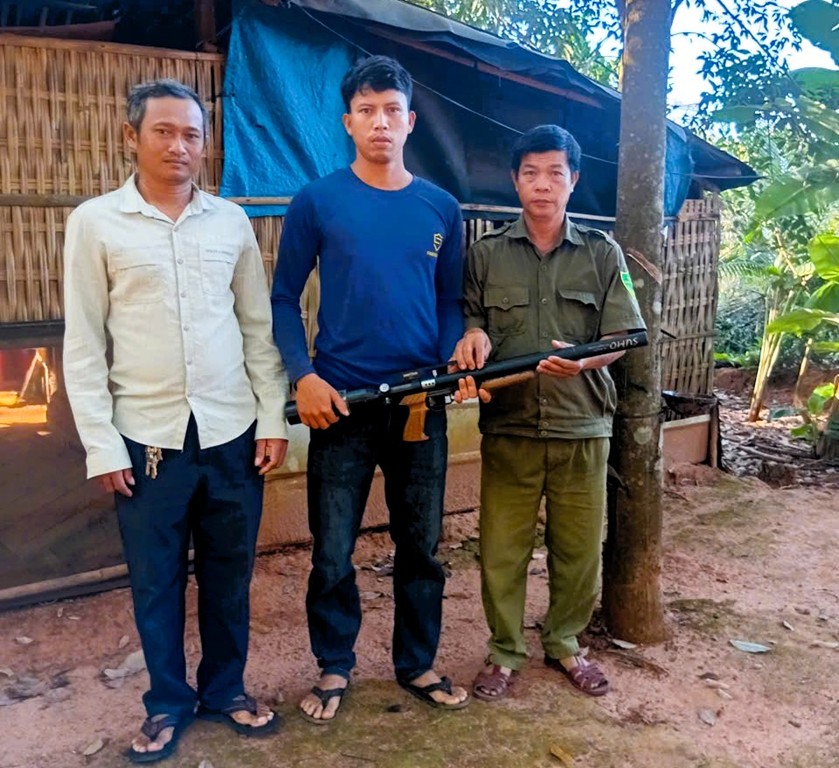 Lực lượng tham gia bảo vệ ANTT ở cơ sở vận động người dân tự nguyện giao nộp 1 khẩu súng nén hơi