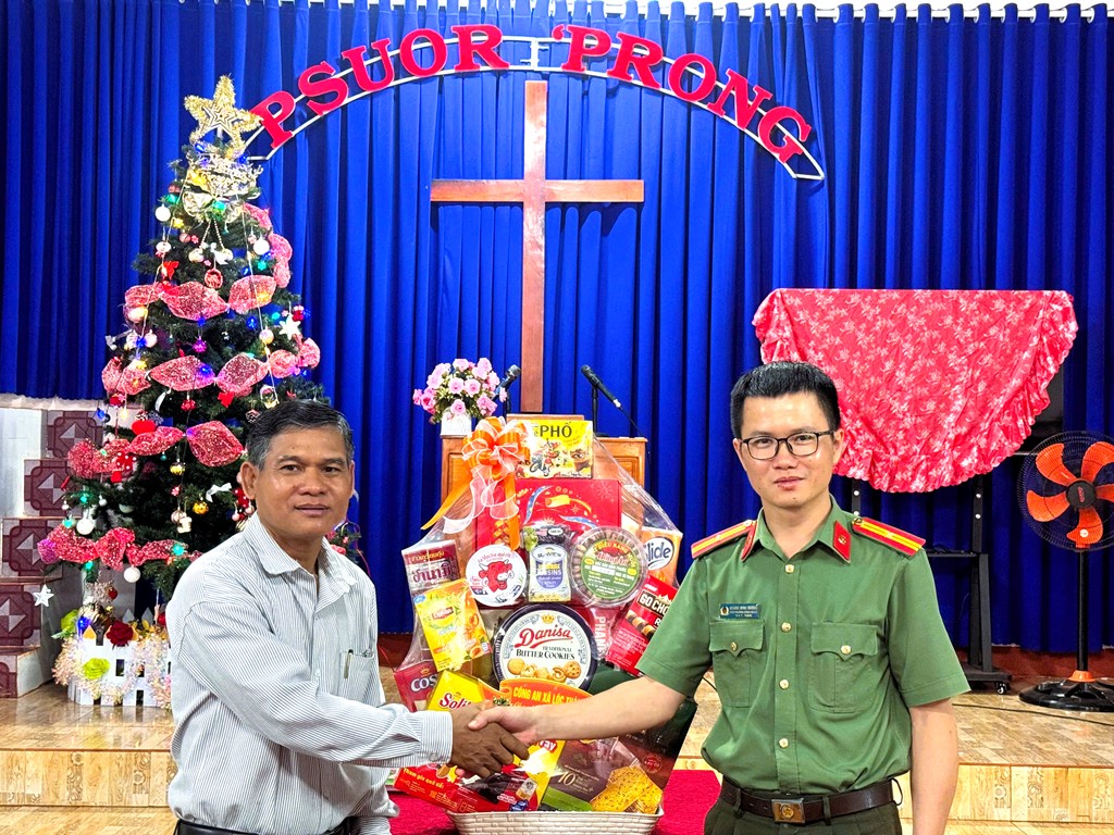 Công an xã thăm, tặng quà và chúc mừng Chi hội Tin lành Lộc Bình