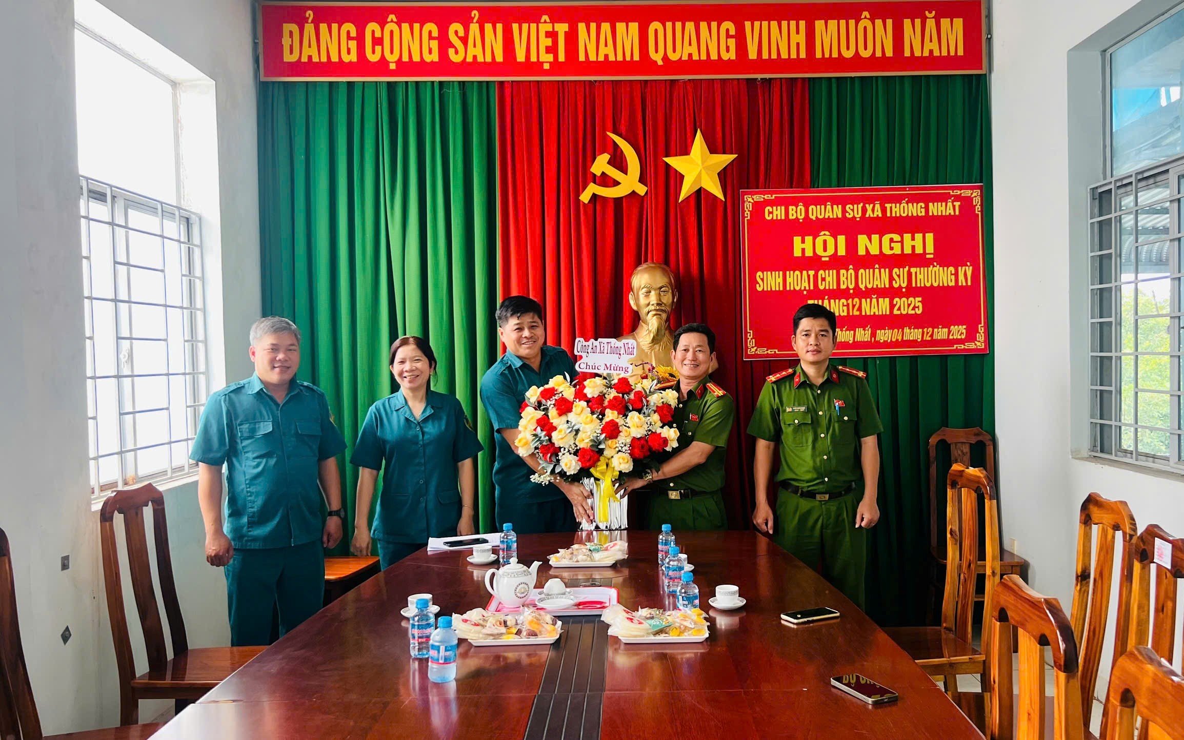 Công an xã Thống Nhất thăm, chúc mừng Ban Chỉ huy Quân sự xã Thống Nhất
