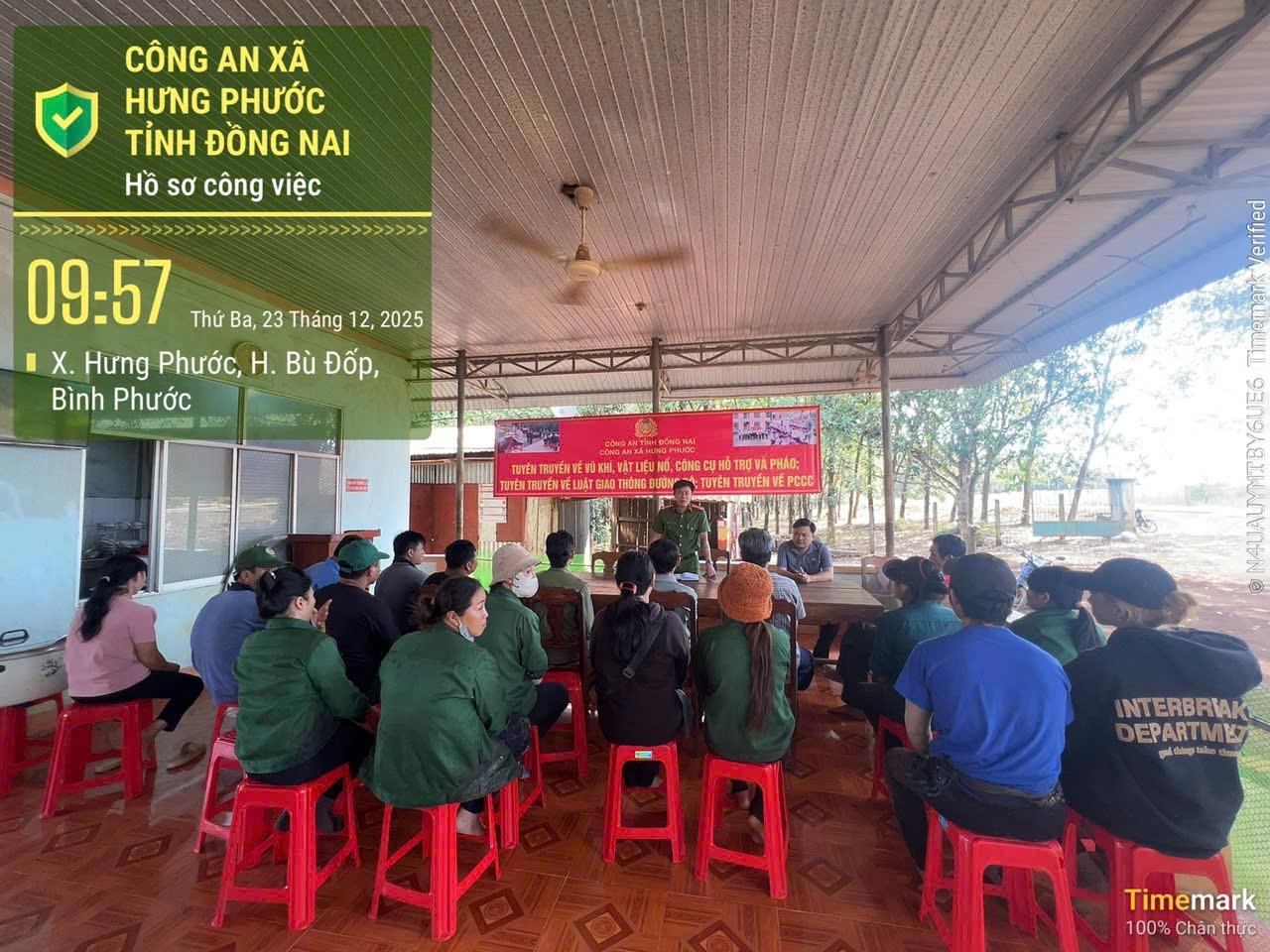 Tại buổi tuyên truyền, lực lượng Công an xã đã thông tin, phổ biến những nội dung cơ bản của các văn bản pháp luật như: Luật Phòng cháy, chữa cháy và cứu nạn cứu hộ; Luật Trật tự, an toàn giao thông đường bộ; Luật Phòng, chống ma túy; Luật Biên giới quốc gia; Luật An ninh mạng cùng các nghị định hướng dẫn thi hành. Qua đó giúp người lao động nắm vững quy định pháp luật, nâng cao ý thức chấp hành, góp phần xây dựng môi trường làm việc lành mạng, an toàn.