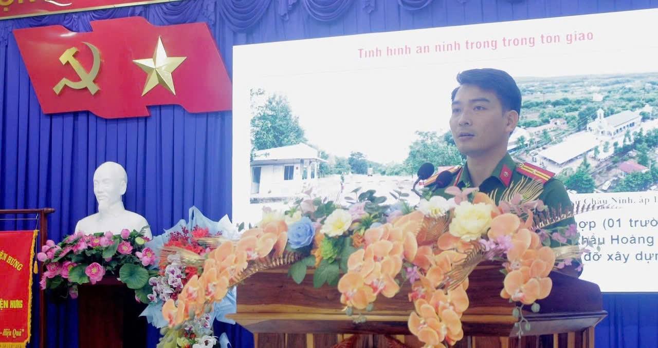 Đồng chí Thượng tá Hồ Văn Sáng, Trưởng Công an xã phát biểu tại Hội nghị