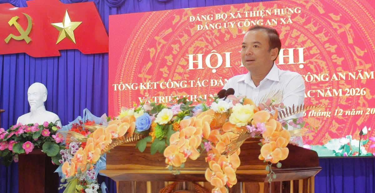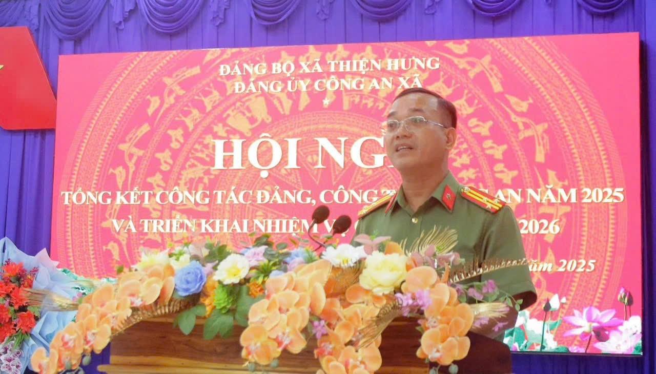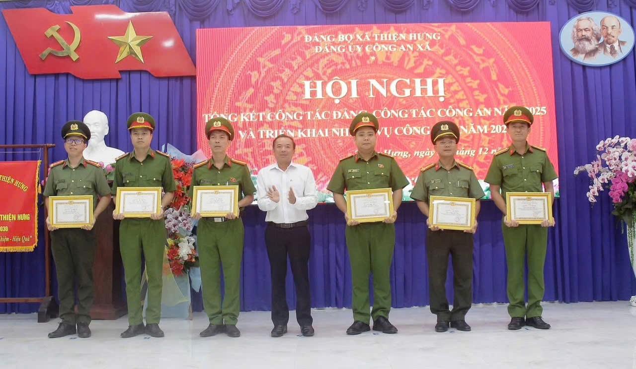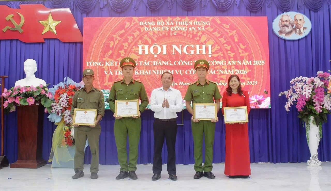 Kết quả, tội phạm về trật tự xã hội giảm 9,3%; phát hiện 12 vụ mua bán, vận chuyển hàng cấm, thu giữ trên 861 kg pháo nổ; kết quả thực hiện nhiệm vụ đạt và vượt 83/86 chỉ tiêu do Công an tỉnh giao. Tổng kết phong trào thi đua vì an ninh Tổ quốc năm 2025, Công an xã Thiện Hưng vinh dự được nhận cờ “Quyết thắng”, nhiều tập thể, cá nhân được tuyên dương, khen thưởng.