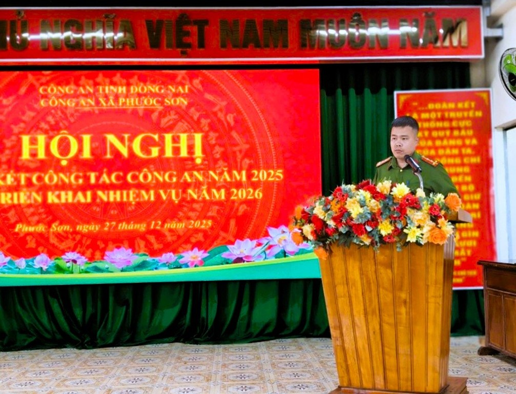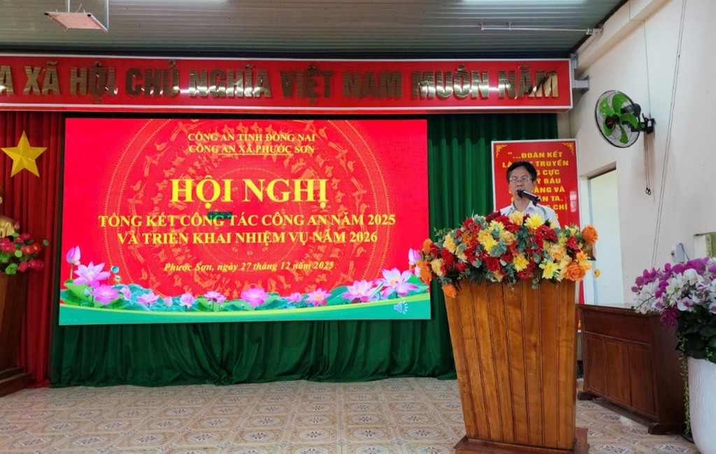 Tại Hội nghị, Công an xã Phước Sơn đã báo cáo, đánh giá toàn diện kết quả các mặt công tác năm 2025, tập trung làm rõ những kết quả nổi bật trong công tác bảo đảm an ninh chính trị, trật tự an toàn xã hội trên địa bàn; công tác xây dựng lực lượng Công an xã chính quy, tinh nhuệ, từng bước hiện đại, đáp ứng yêu cầu nhiệm vụ trong tình hình mới.