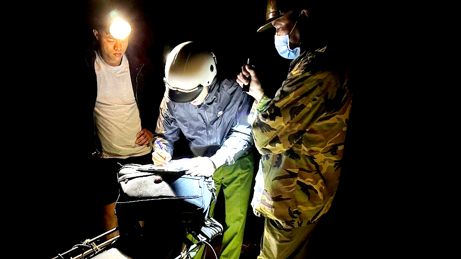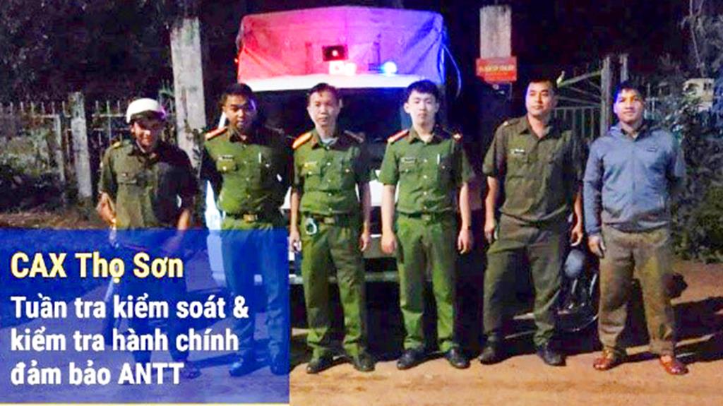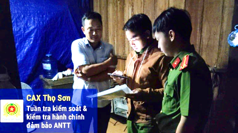 Công an xã Thọ Sơn kiểm tra hành chính ban đêm trong đợt cao điểm.