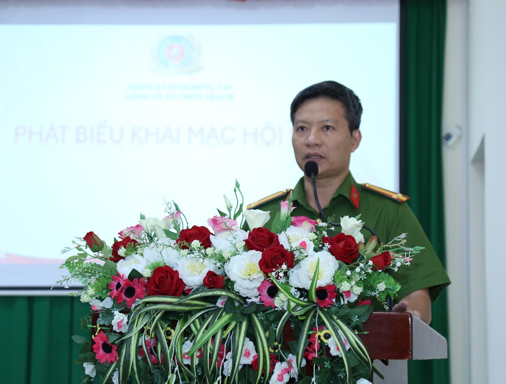 Trung tá Trịnh Anh Việt, Trưởng Công an xã phát biểu khai mạc Hội nghị