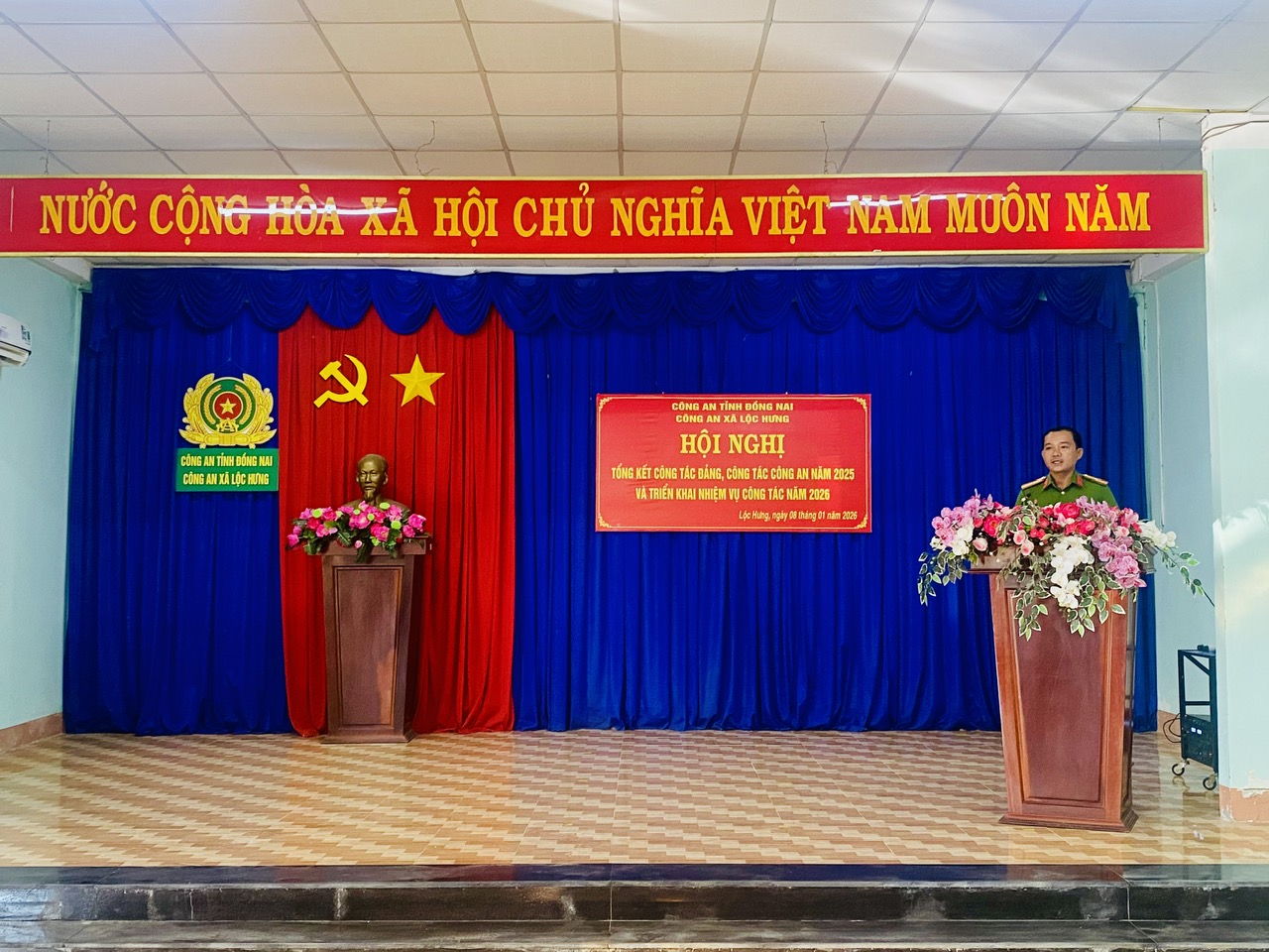 Phát biểu chỉ đạo tại Hội nghị, đồng chí Bí thư Đảng uỷ - Chủ tịch Hội đồng nhân dân xã đã ghi nhận, biểu dương và đánh giá cao kết quả các mặt công tác của Công an xã trong năm 2025. Đồng chí đề nghị thời gian tới, Công an xã Lộc Hưng tiếp tục chủ động dự báo, đánh giá sát tình hình, phát hiện sớm các vấn đề nảy sinh có nguy cơ gây mất an ninh, trật tự, không để bị động, bất ngờ trong mọi tình huống; quan tâm công tác xây dựng Đảng, xây dựng lực lượng Công an trong sạch, vững mạnh; đặc biệt là triển khai mạnh mẽ, sâu rộng phong trào thi đua “Ba nhất: Kỷ luật nhất - Trung thành nhất - Gần dân nhất”, coi đây là trụ cột nâng cao chất lượng phong trào thi đua “Vì an ninh Tổ quốc”. Trước mắt, Công an xã cần tập trung lực lượng, phương tiện triển khai có hiệu quả Kế hoạch cao điểm tấn công, trấn áp tội phạm bảo đảm tuyệt đối an toàn Đại hội đại biểu toàn quốc lần thứ XIV của Đảng, bầu cử đại biểu Quốc hội khóa XVI, đại biểu HĐND các cấp nhiệm kỳ 2026 - 2031 và bảo đảm an ninh trật tự Tết Nguyên đán Bính Ngọ năm 2026.