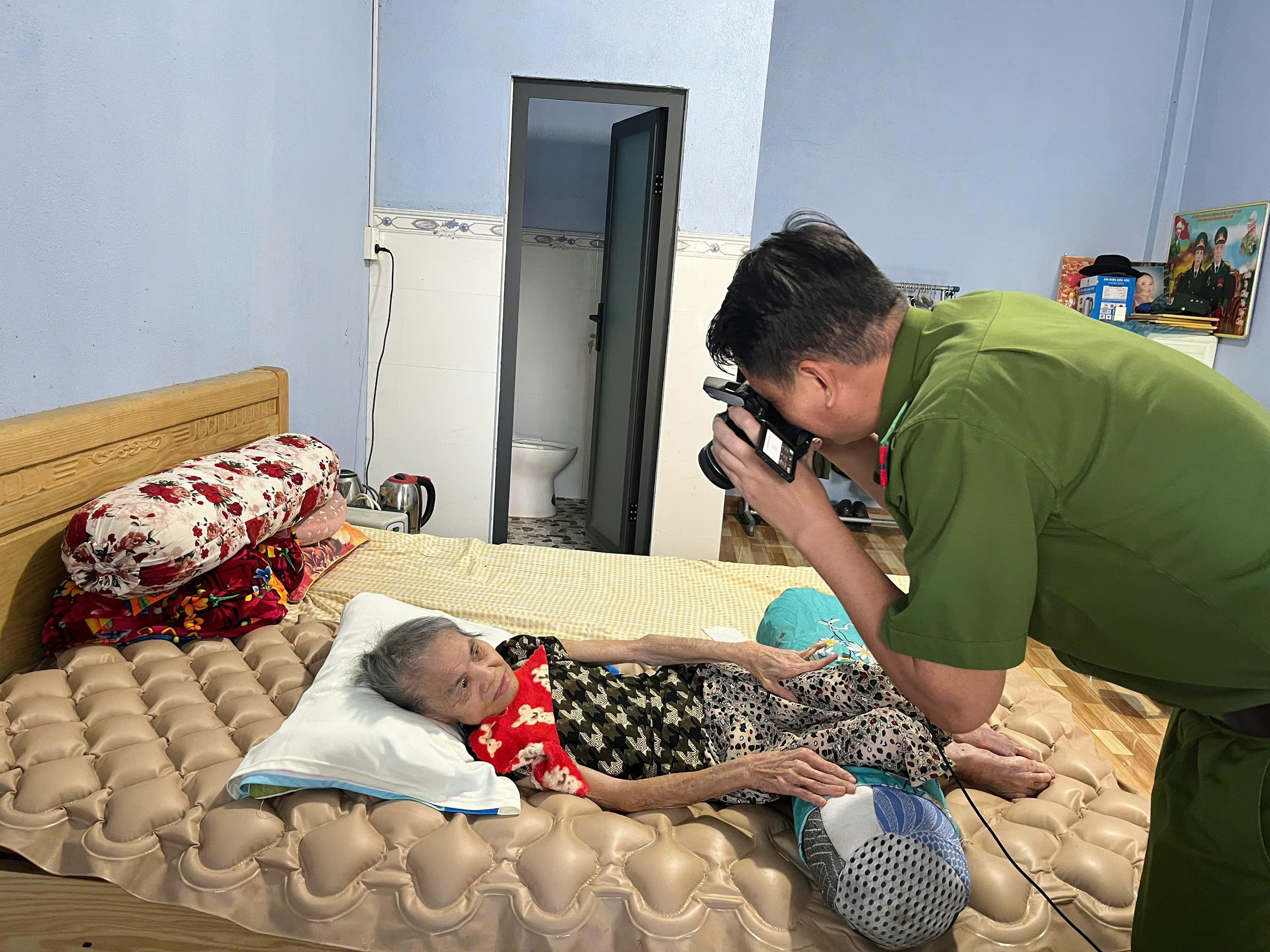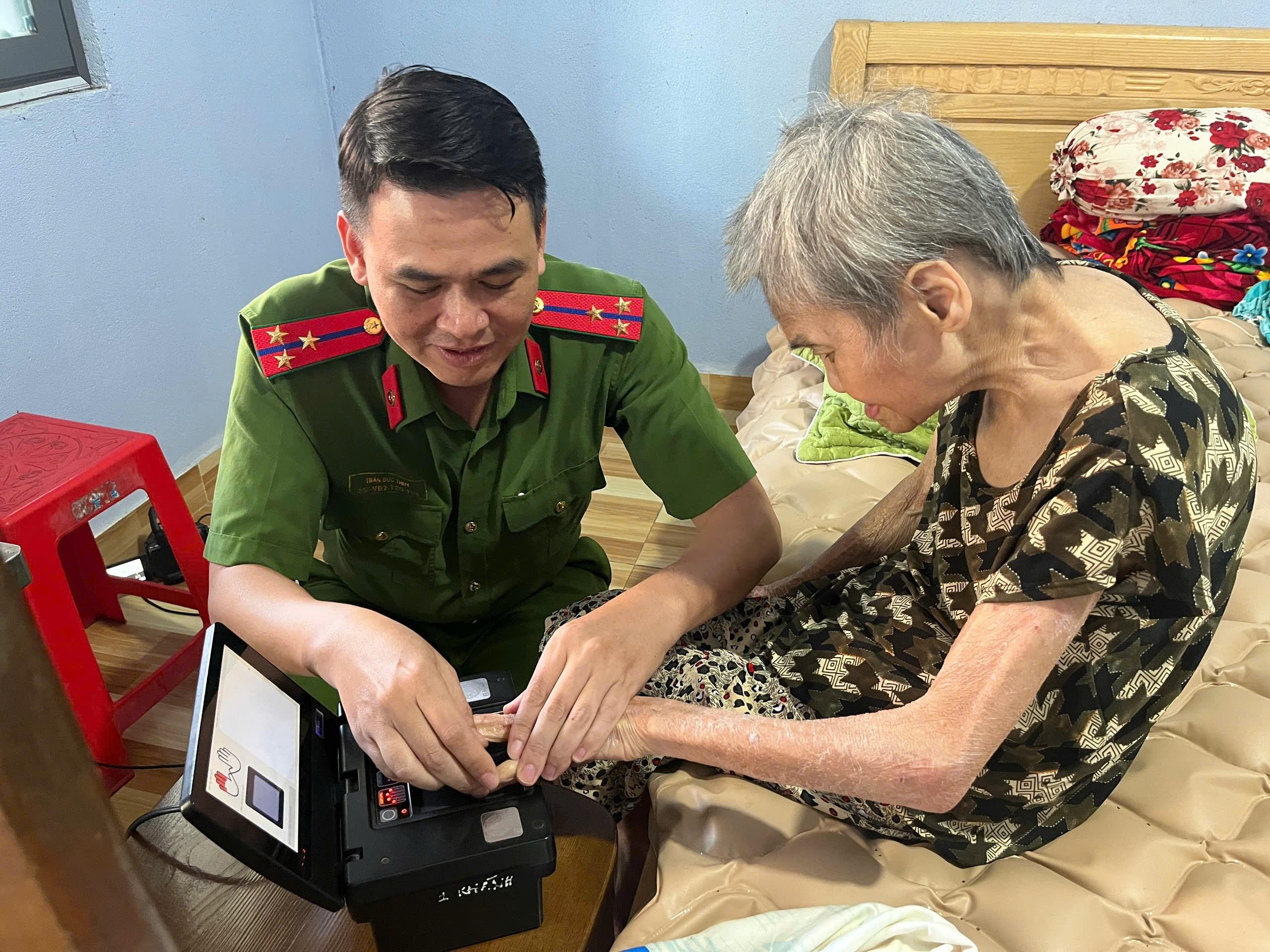 Cán bộ chiến sĩ tận tình làm thủ tục cấp căn cước tại nhà đối với các trường hợp già yếu, bệnh tật, không đi lại được
