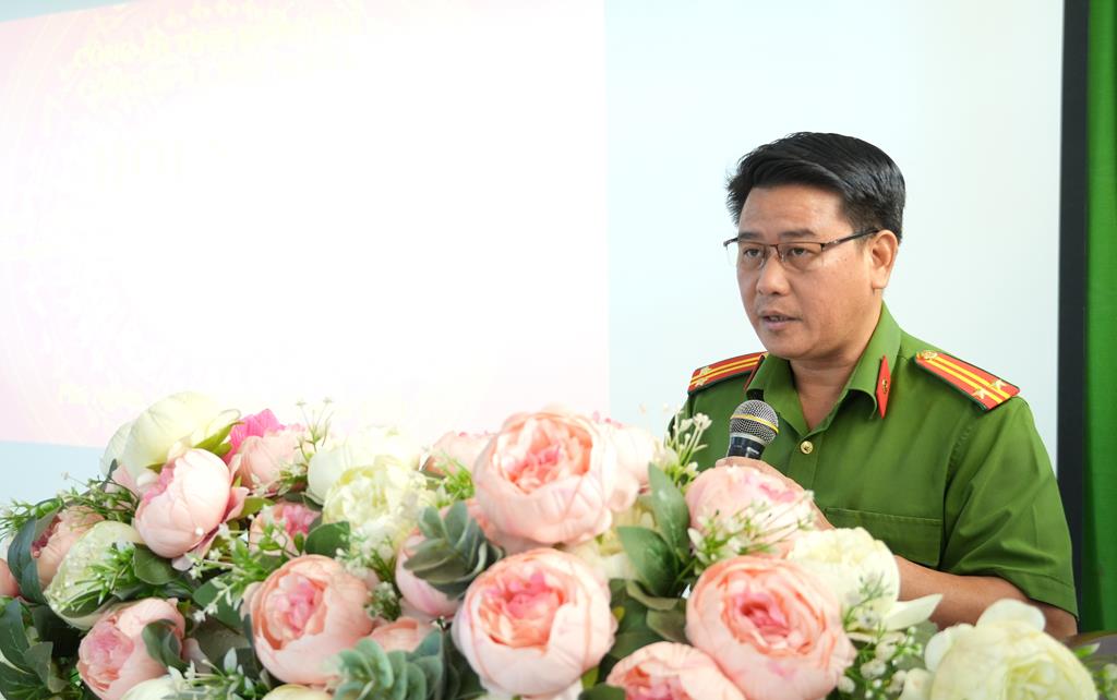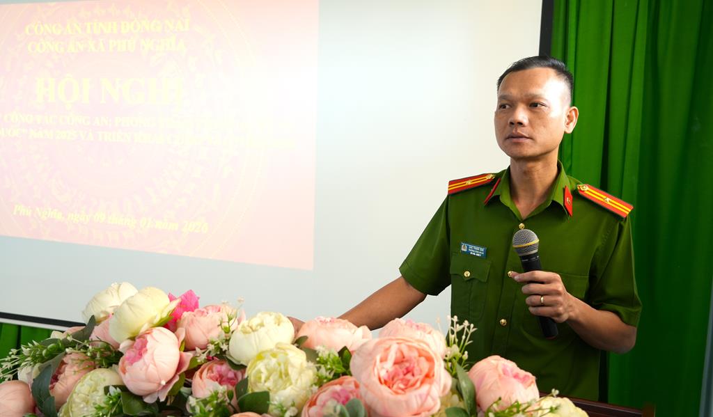 Thiếu tá Cao Thanh Sơn, Trưởng Công an xã báo cáo tiếp thu ý kiến chỉ đạo và phát động phong trào thi đua “Vì an ninh Tổ quốc” năm 2026.