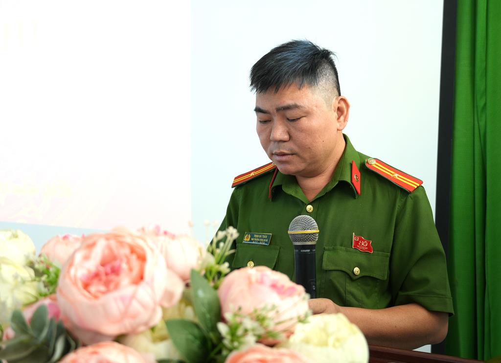 Chỉ huy Công an xã báo cáo tham luận tại Hội nghị