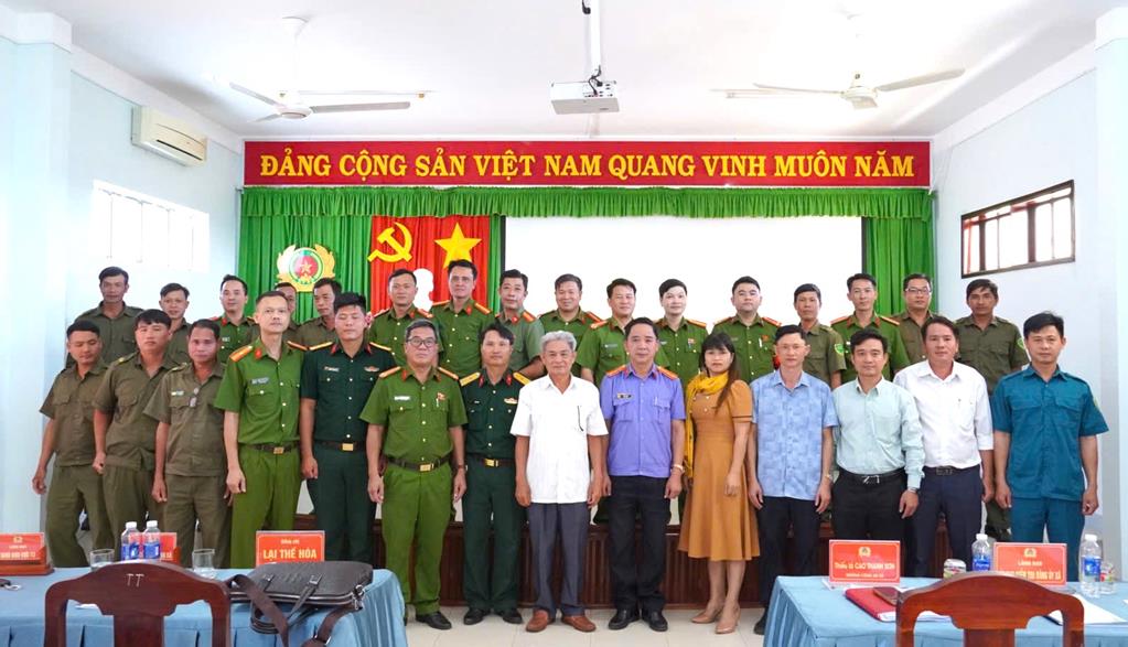 Các đại biểu chụp hình cùng Công an xã và lực lượng bảo đảm ANTT ở cơ sở