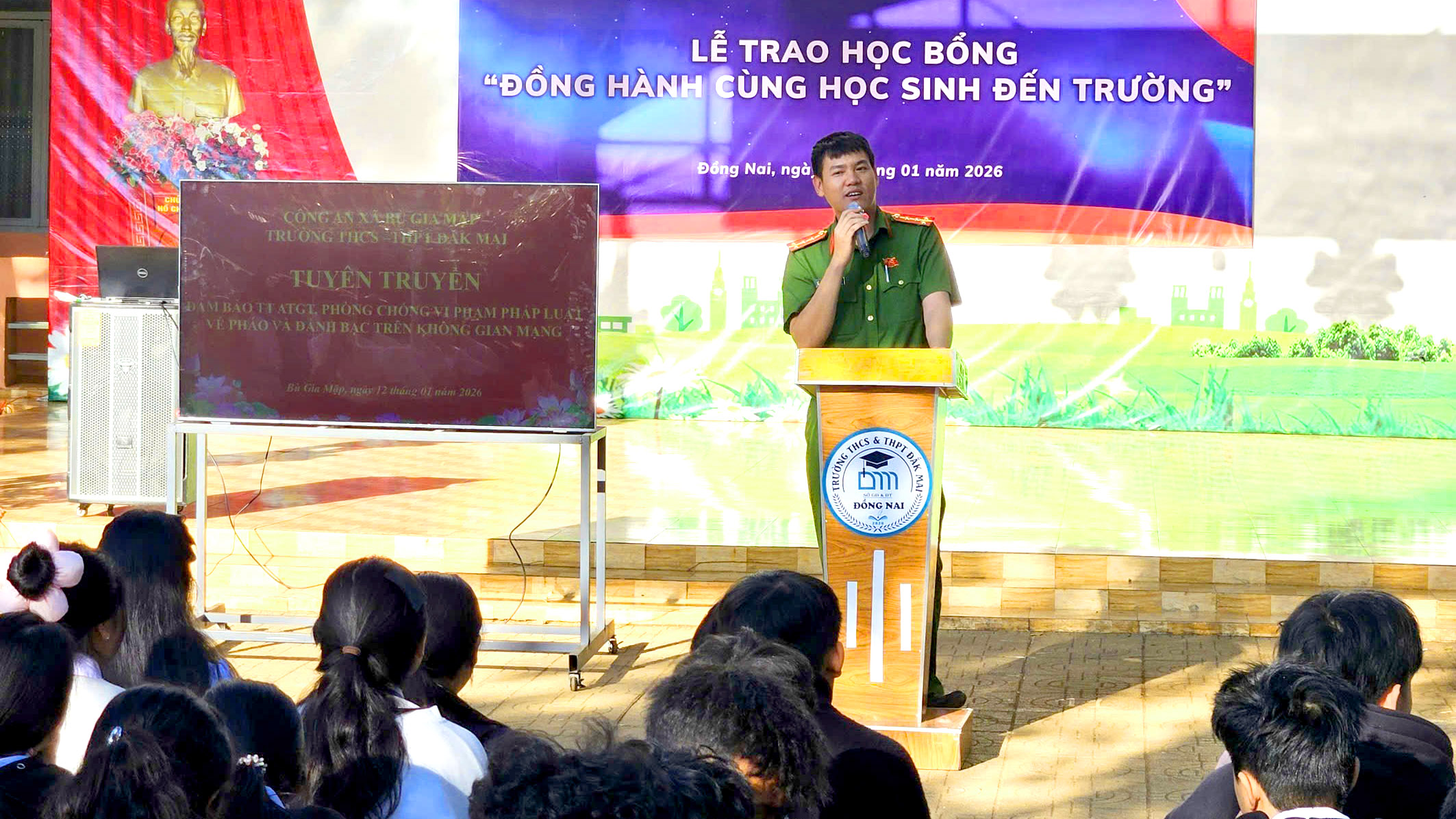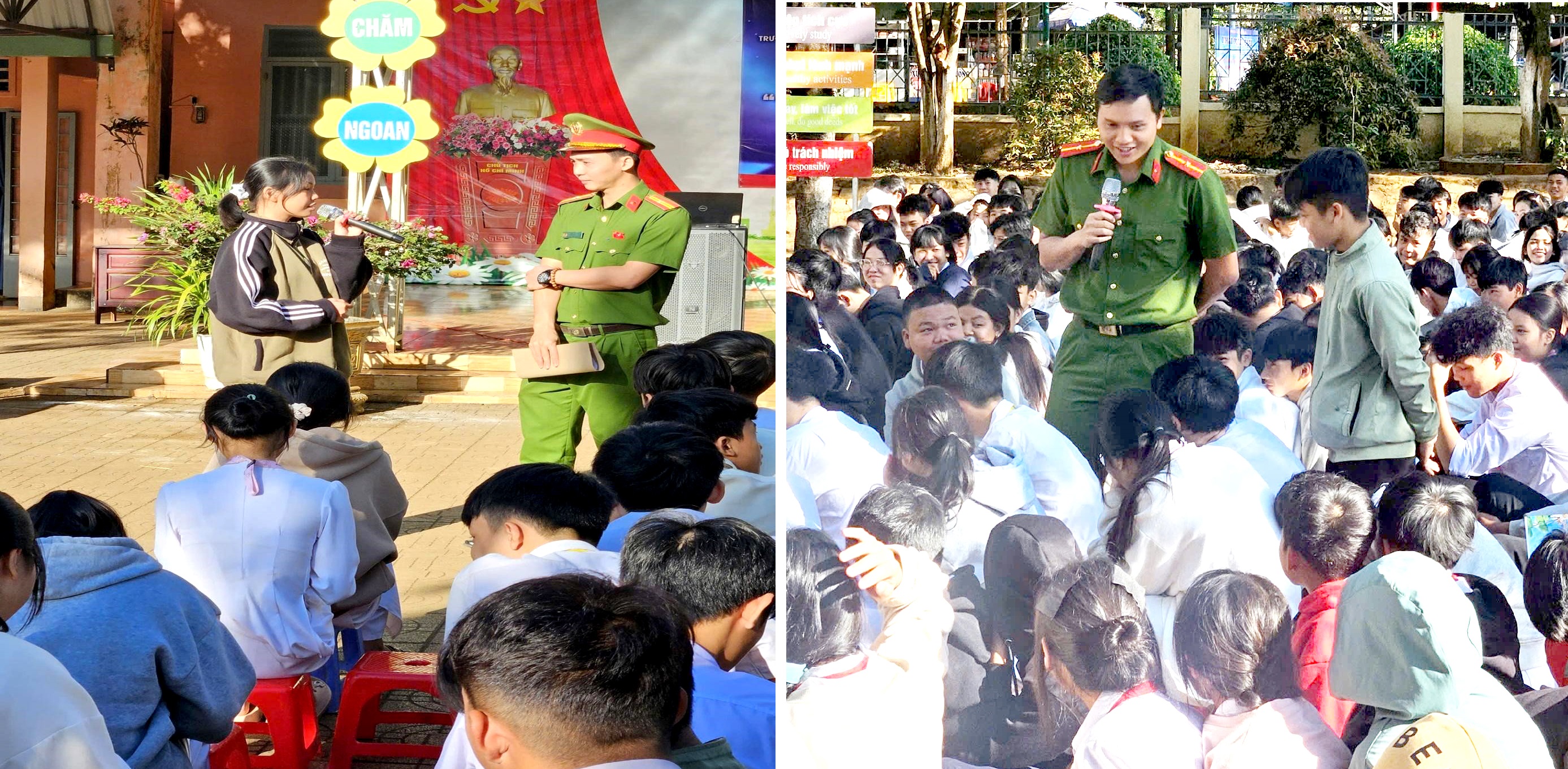 Tại buổi tuyên truyền, cán bộ Công an xã đã thông tin, phổ biến đến thầy và trò nhà trường các nội dung về tình hình ANTT nói chung trên địa bàn tỉnh thời gian qua; Hoạt động của tội phạm mua bán người và cách nhận biết, phòng ngừa; Tội phạm trên không gian mạng, các nguy cơ tiềm ẩn của tội phạm trên không gian mạng và cách phòng ngừa; Cách phòng, chống vi phạm pháp luật về pháo và đánh bạc trên không gian mạng; Thông tin, tuyên truyền về tình hình trật tự, an toàn giao thông và hậu quả của tai nạn giao thông; Những hành vi vi phạm là nguyên nhân trực tiếp dẫn đến tai nạn giao thông; Các nguyên nhân dẫn đến cháy nổ, các biện pháp phòng ngừa cháy nổ, kỹ năng thoát hiểm khi có cháy, nổ xảy ra; Nguyên nhân, điều kiện phát sinh tội phạm ma túy; Phương thức, thủ đoạn và tác hại của các loại ma túy mới; Phòng, chống tội phạm và vi phạm pháp luật liên quan đến người dưới 18 tuổi…