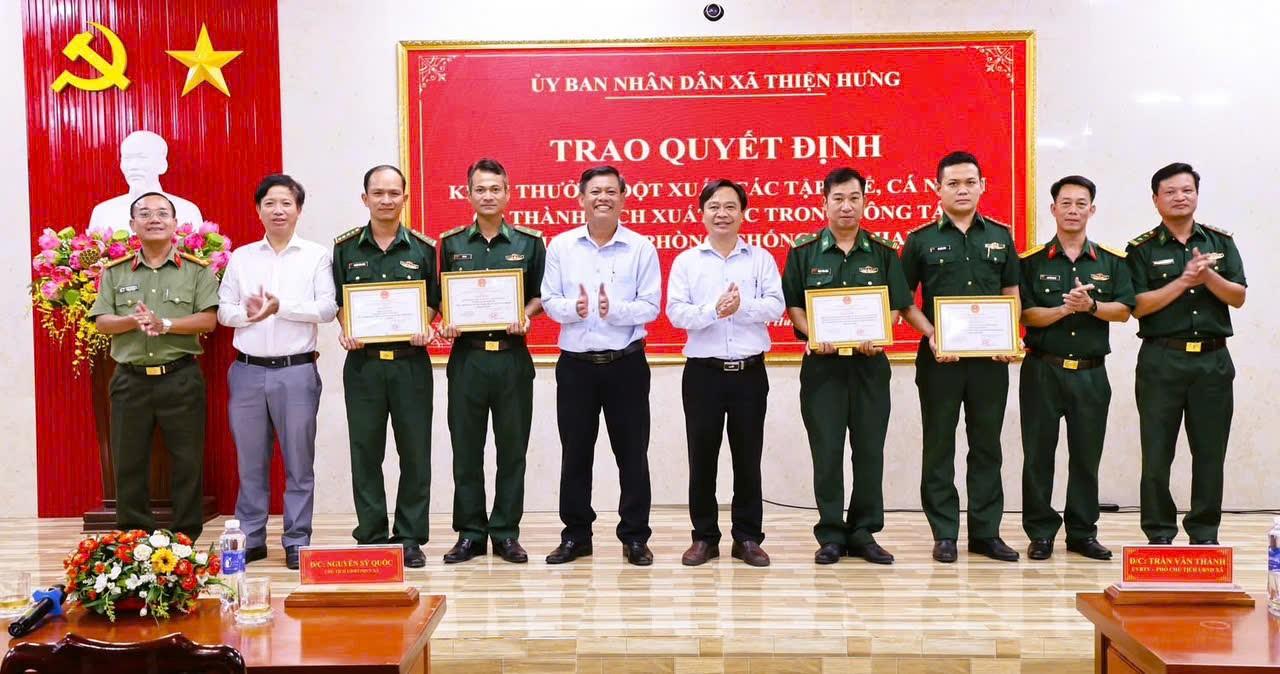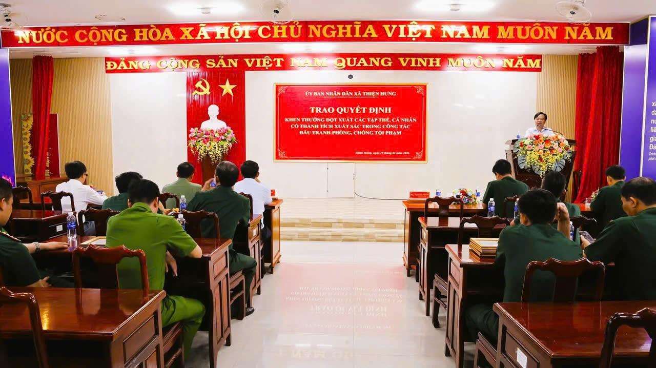 Tại buổi trao thưởng, đại diện lãnh đạo phòng Văn hóa - Xã hội đã thông qua các quyết định của UBND xã Thiện Hưng tặng giấy khen đột xuất cho các tập thể, cá nhân có thành tích xuất sắc trong công tác đấu tranh, phòng chống tội phạm.