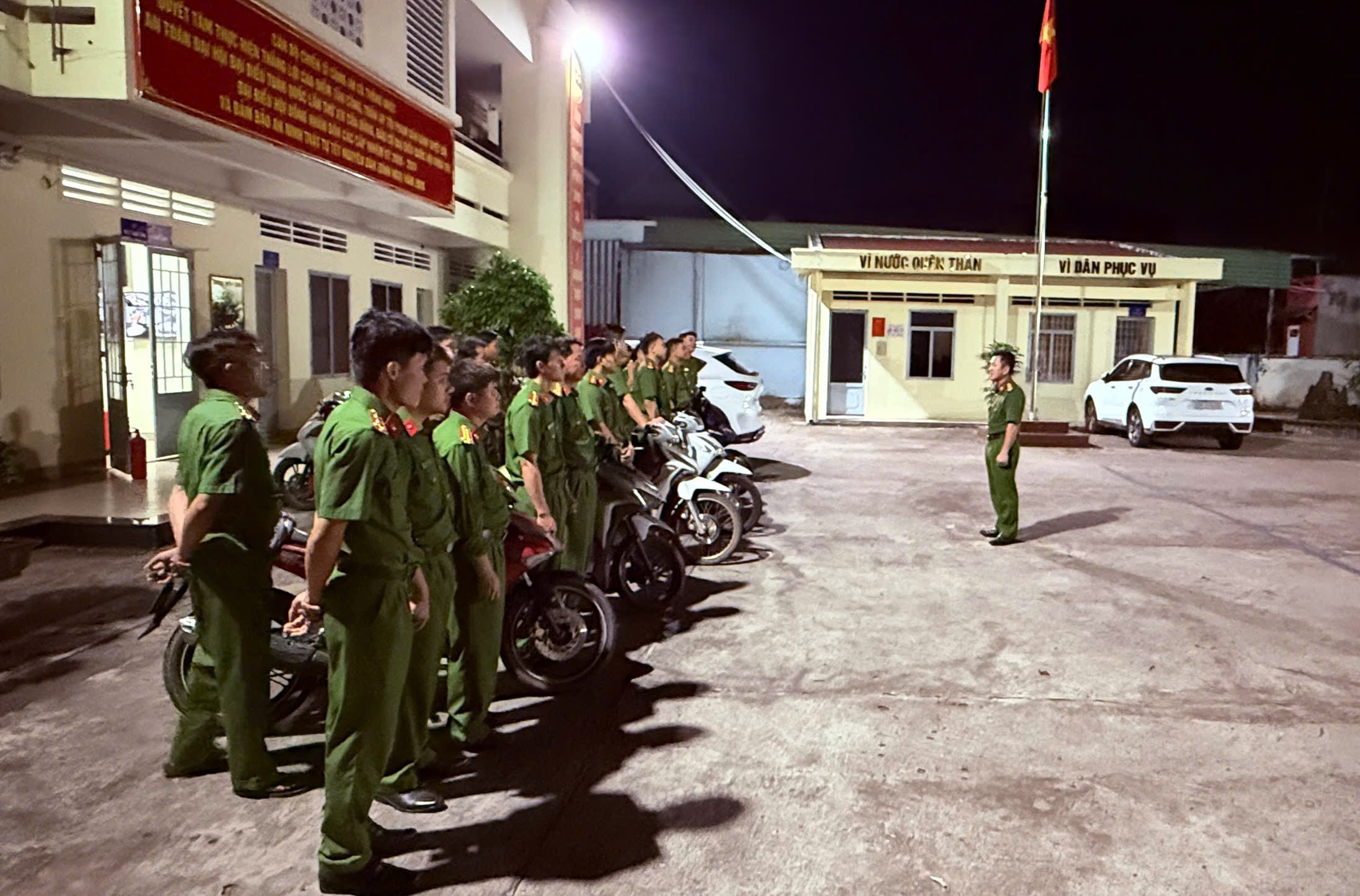 Chỉ huy Công an xã quán triệt nhiệm vụ trước khi tuần tra